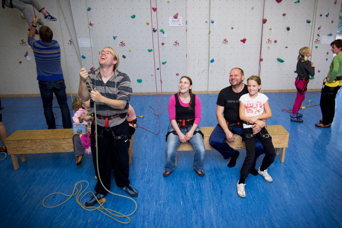 Ein weiterer Höhepunkt war der Besuch der Kletterhalle nebenan. Nach einem Grundkurs mit Einweisung in Technik, Absicherung und Erläuterung der verschiedenen Kletterrouten durften sich Alt und Jung an den Wänden versuchen. Wir hatten großen Spaß und lernten einander beim Absichern zu vertrauen und unsere eigenen Grenzen zu erkennen.