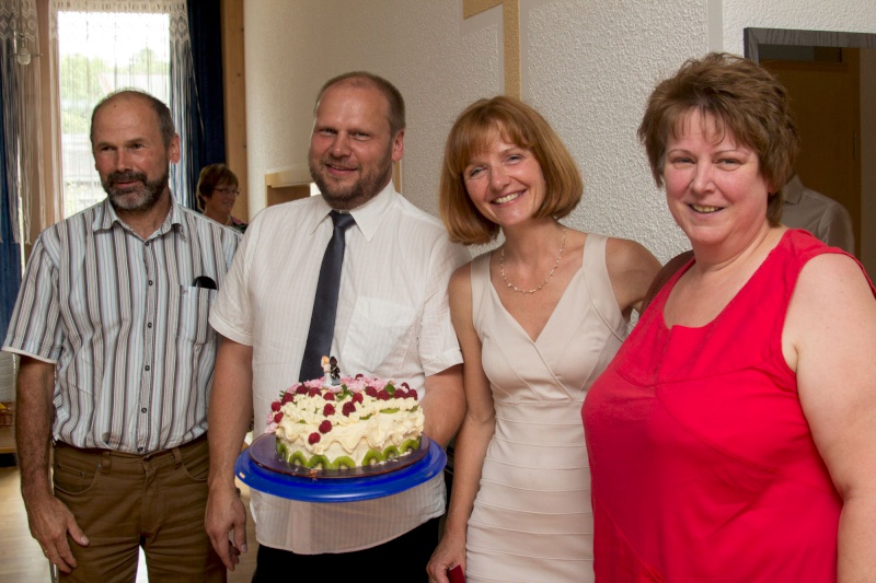 Am vergangenen Sonntag wurde ein Fest gefeiert: Zweimal 25 Jahre Ehe! Karina und Jörg Gritzka aus Spremberg sowie unser ehemaliger Prediger (1991-2001) Reinhard Jahn mit seiner Frau Dorothee aus Wuppertal sind jeweils seit 25 Jahren verheiratet und nutzten diesen Anlass, um mit der Gemeinschaft zu feiern.