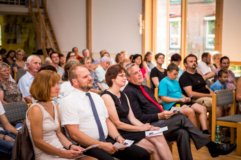 Es begann mit einem musikalischem Gottesdienst. Friedhelm Geiß aus Woltersdorf und seine Frau Christa führten durch das Programm mit Gedichten, Gebet und Zusprüchen. Es wurde gemeinsam gesungen, der Chor brachte zwei Lieder dar und das bunt zusammengewürfelte Musikteam setzte musikalische Höhepunkte mit Vortragsliedern für die Ehepaare und die Gemeinde.