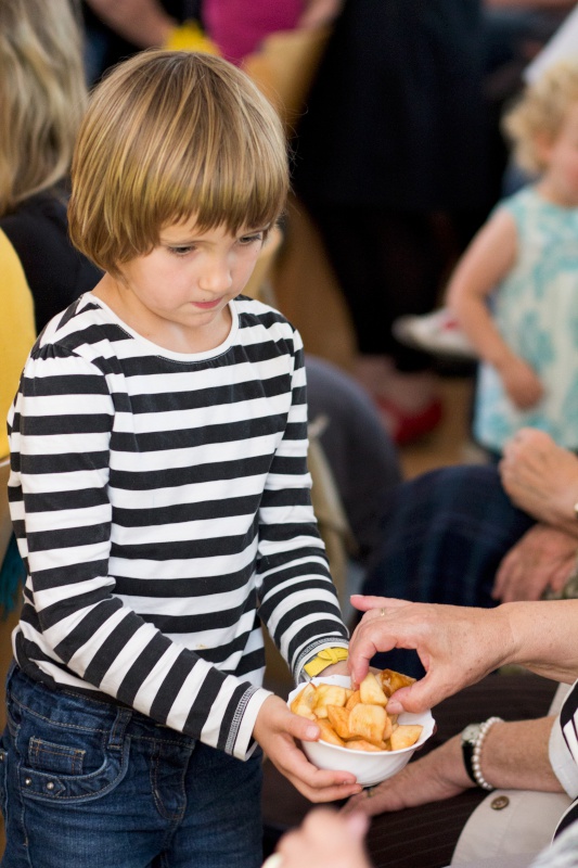 Sehr bunt ging es beim letzten Familiengottesdienst am Sonntag (28.09.2014) zu. Bunt von der Vielfalt der Besucher: Klein und Groß, Eltern und Kinder, Senioren, Jugendliche Erwachsene – von allem war etwas dabei. Ganz viele Kita-Familien hatten sich einladen lassen – der Saal war voll 😉