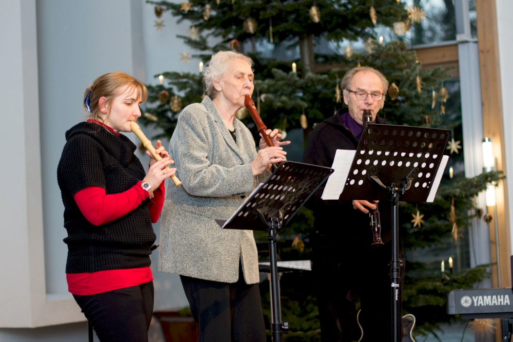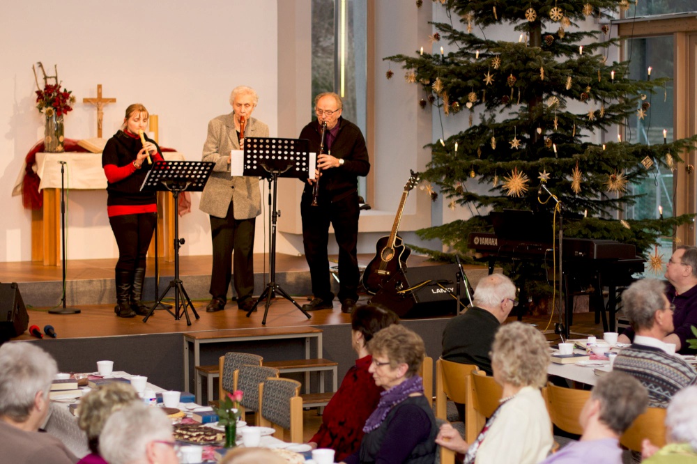 Ludwig Scheibner begrüßte die fast 60 Frauen und Männer und wünschte eine gute Zeit miteinander. Danach spielte ein Flötentrio und Kinder aus dem Ev. Musikkindergarten gaben ein Ständchen.