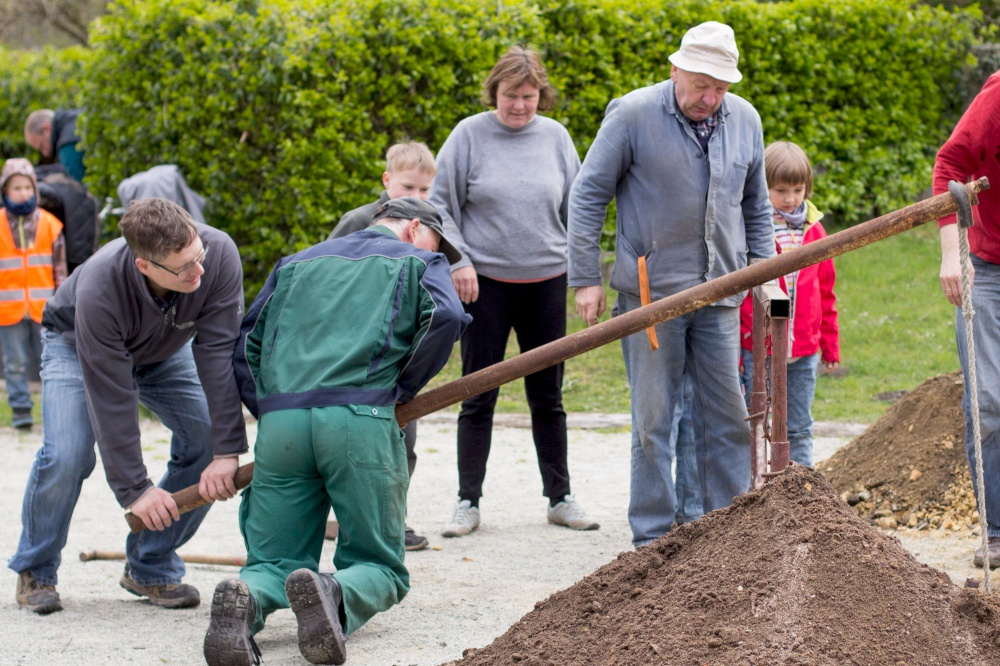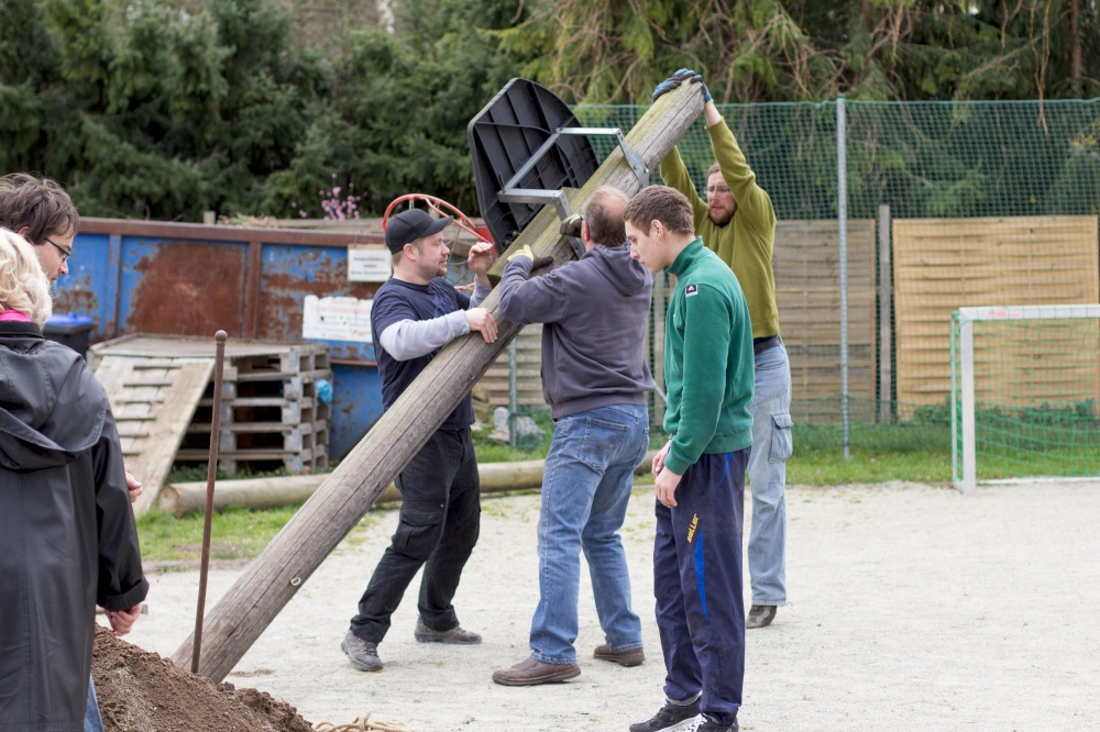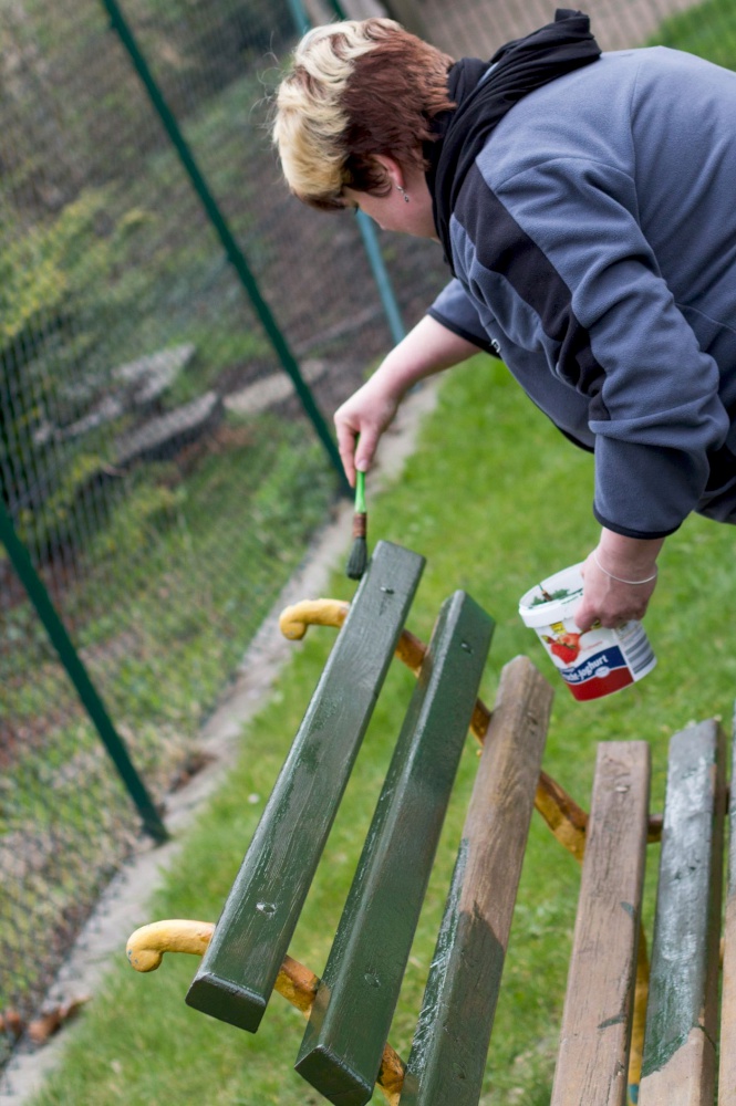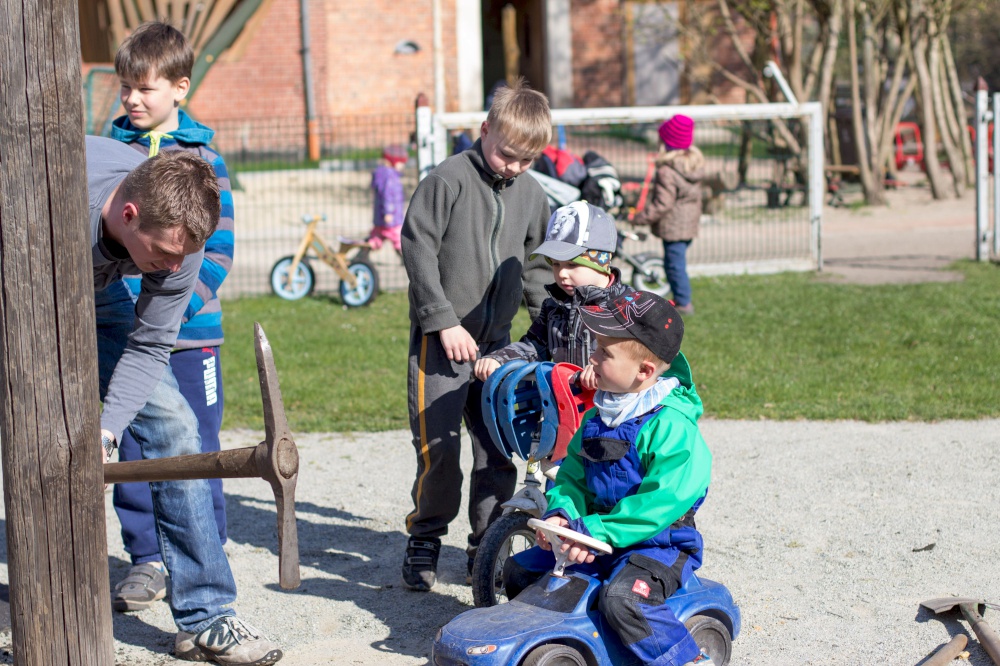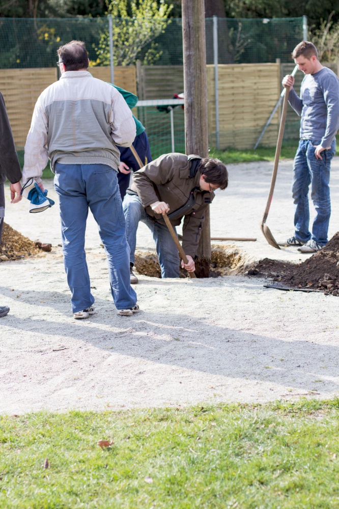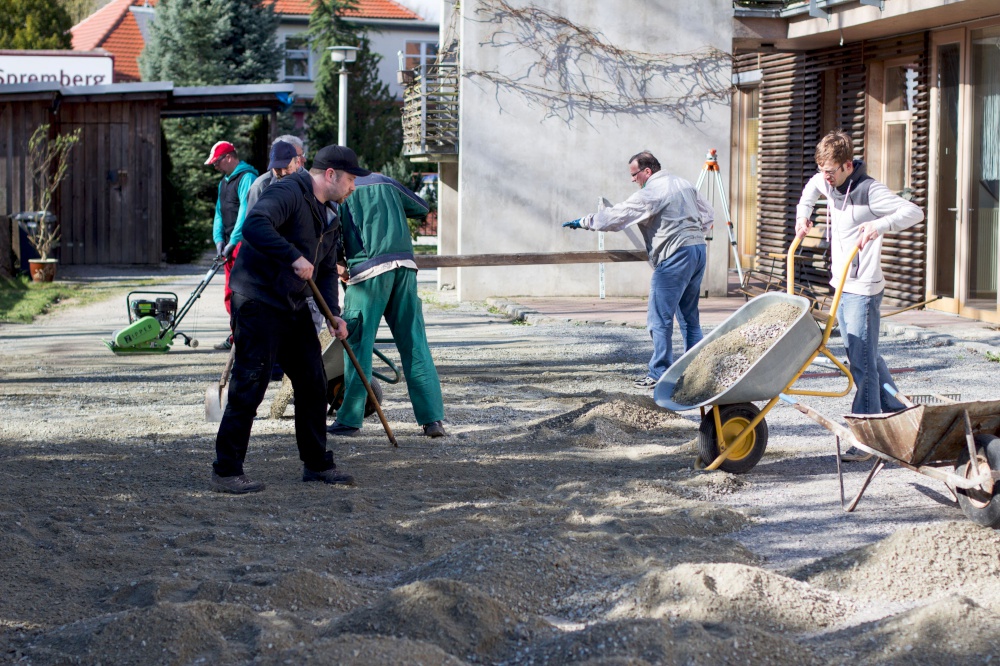 Kita-Eltern und -Kinder, Gemeinschaftsleute von alt bis jung trafen sich zum Putzen und Aufräumen, zum Harken und Unkraut jäten, zum Löcher graben und Löcher füllen, zum Schleifen und Streichen, zum Fenster rausreißen und Fenster einbauen und vielem mehr.
