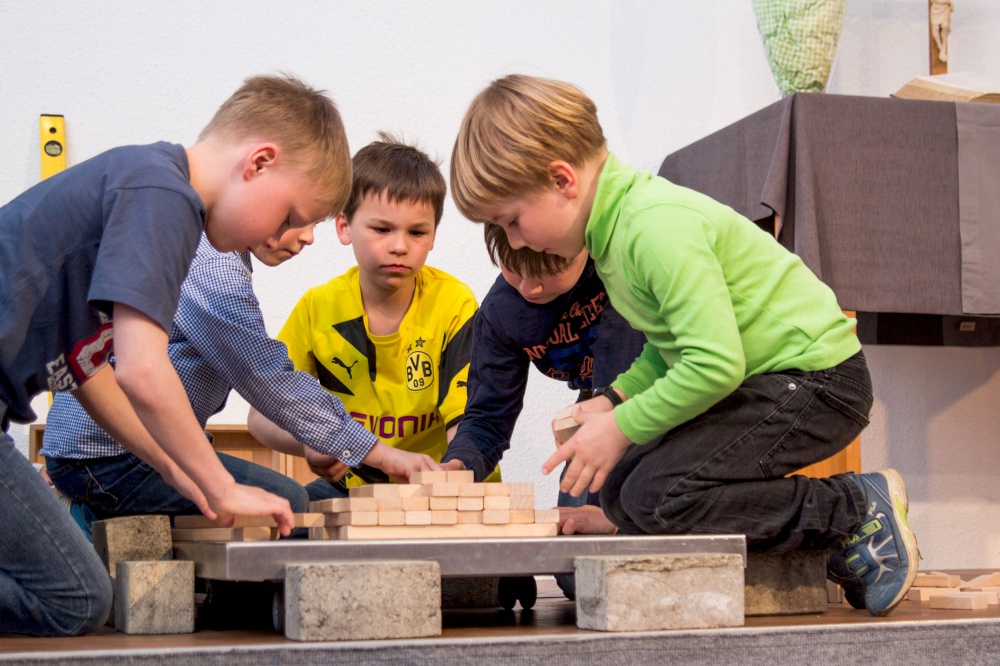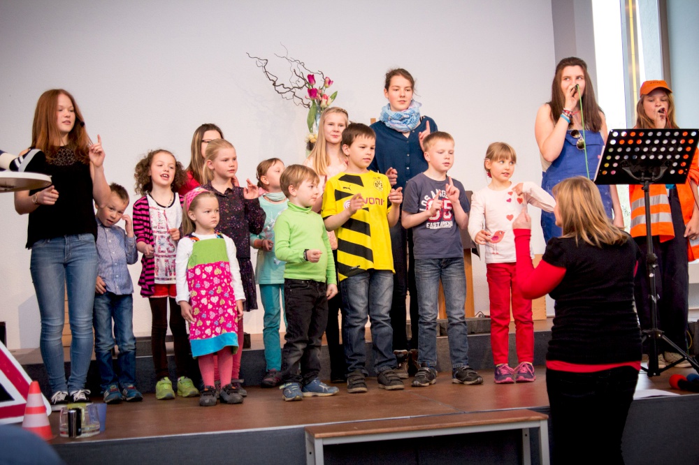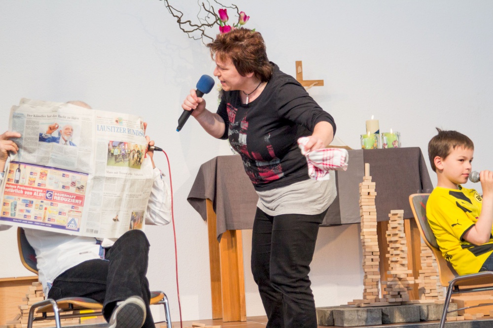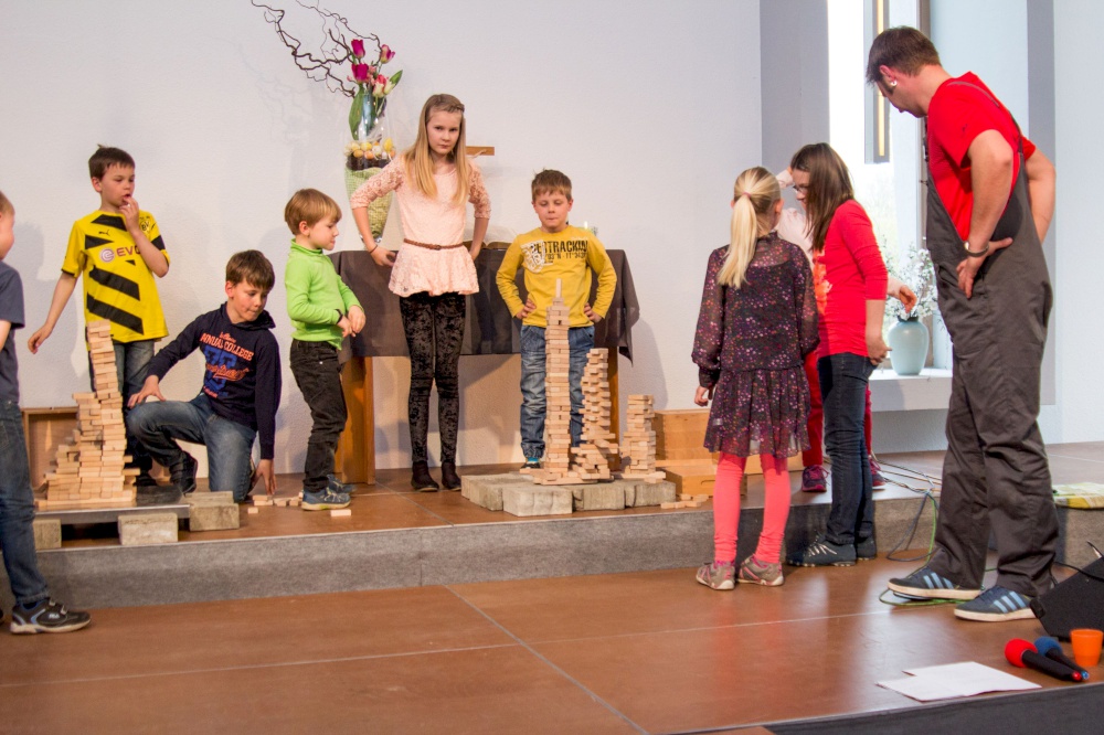 Die Kinder gestalteten das Programm mit Liedern mit und durften sich am Turmbau versuchen. Familie Greiner zeigte uns im Anspiel, was denn wichtig ist im Leben – für jeden etwas anderes und Sarah, Marie und Basti sorgten für gute Musik.