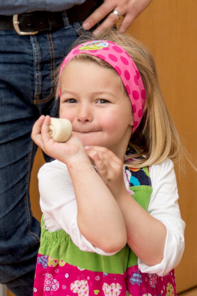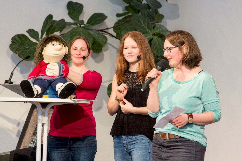 Handpuppe Max (geführt von Maria) und Hanna führten locker durch das Programm und Jens Peter Erichsen aus Cottbus predigte.