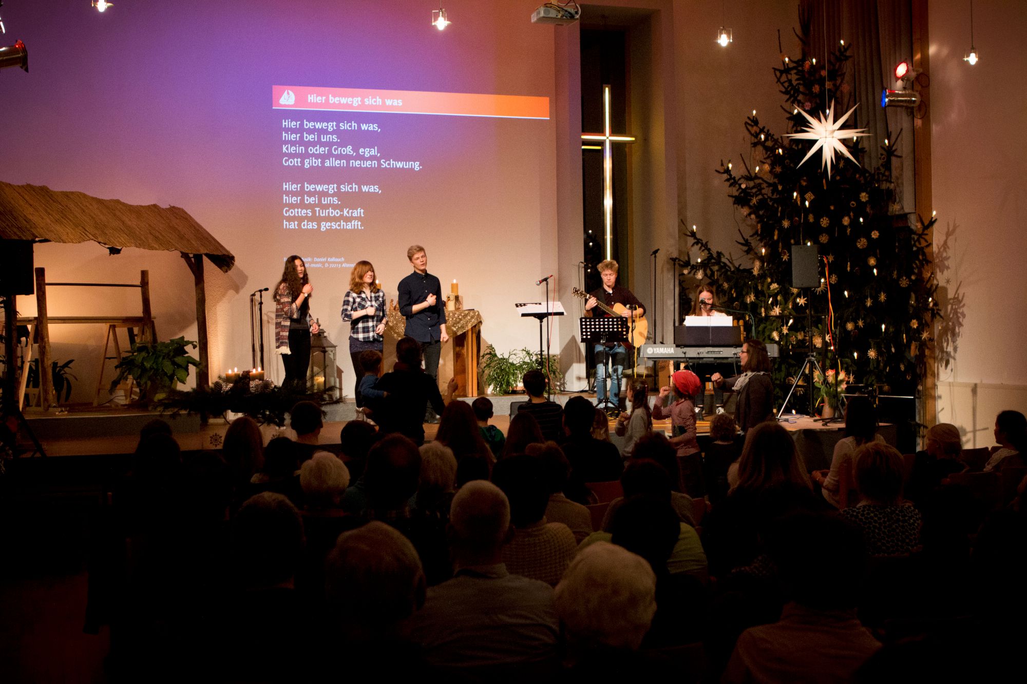 Im Rahmen des Lebendigen Adventskalenders der Stadt wurde in unserer Gemeinschaft das 20. Türchen geöffnet. Dahinter verbarg sich ein einen bunten Gottesdienst, den die Junge Gemeinde ausgestaltete. Zum Thema „Stille“ gab es ein lautes Anspiel, gute Musik und eine Predigt von Lisa.