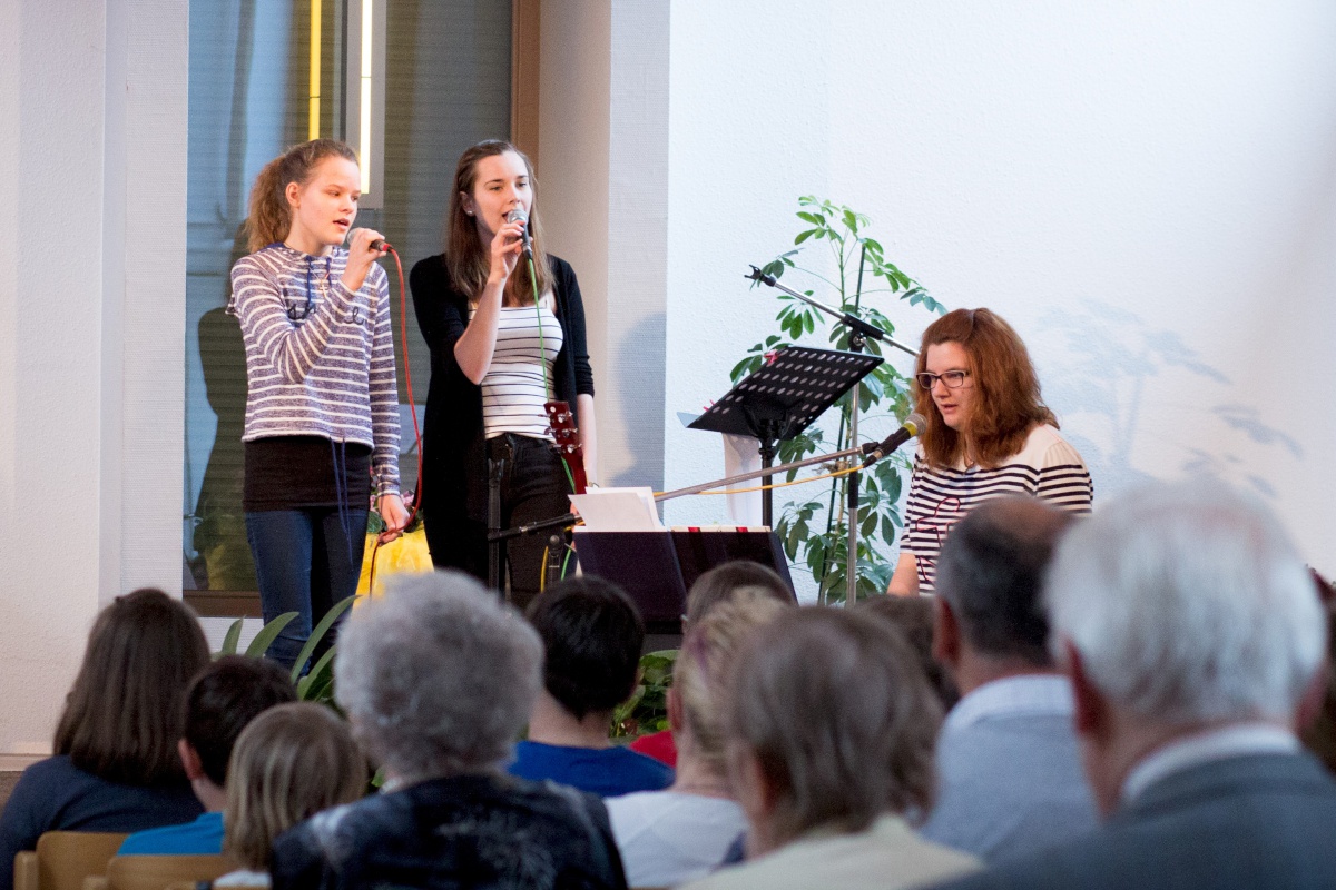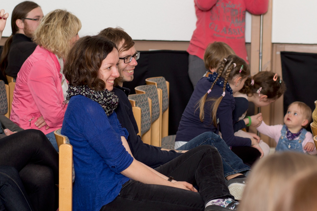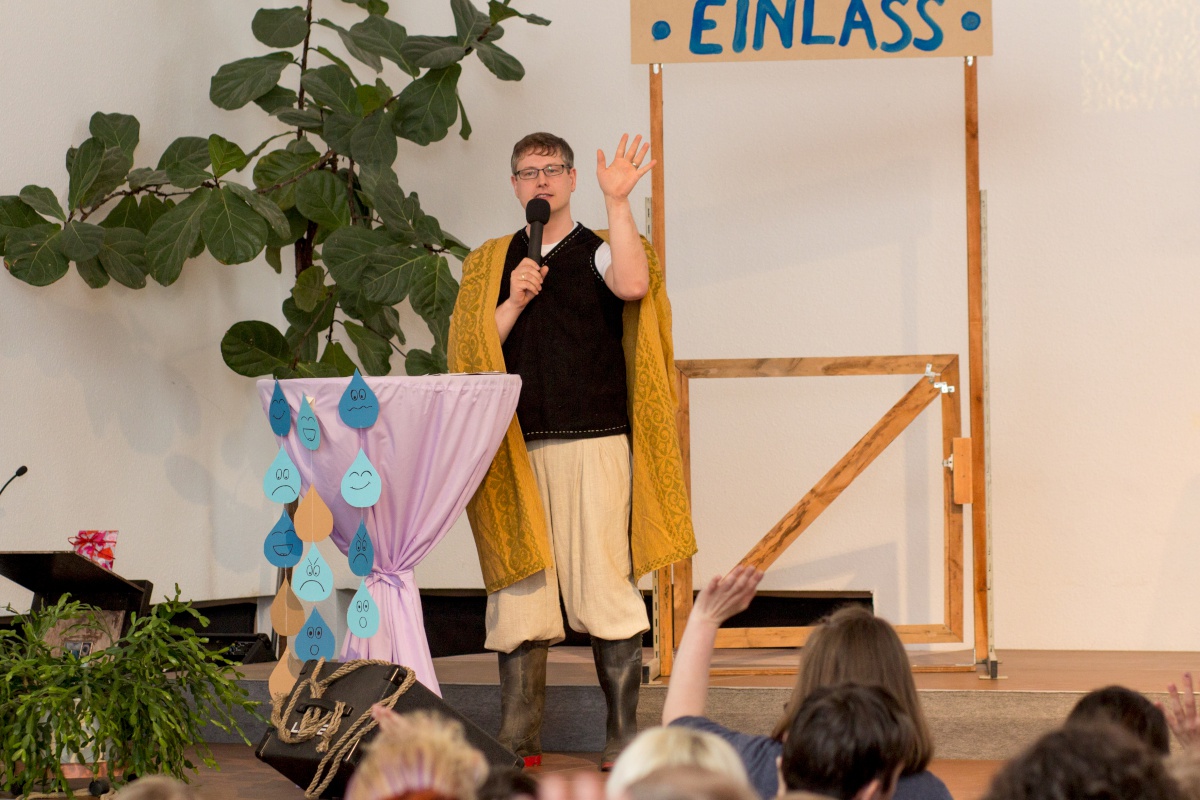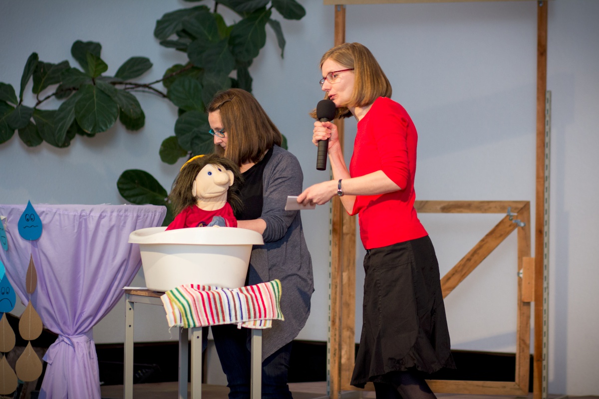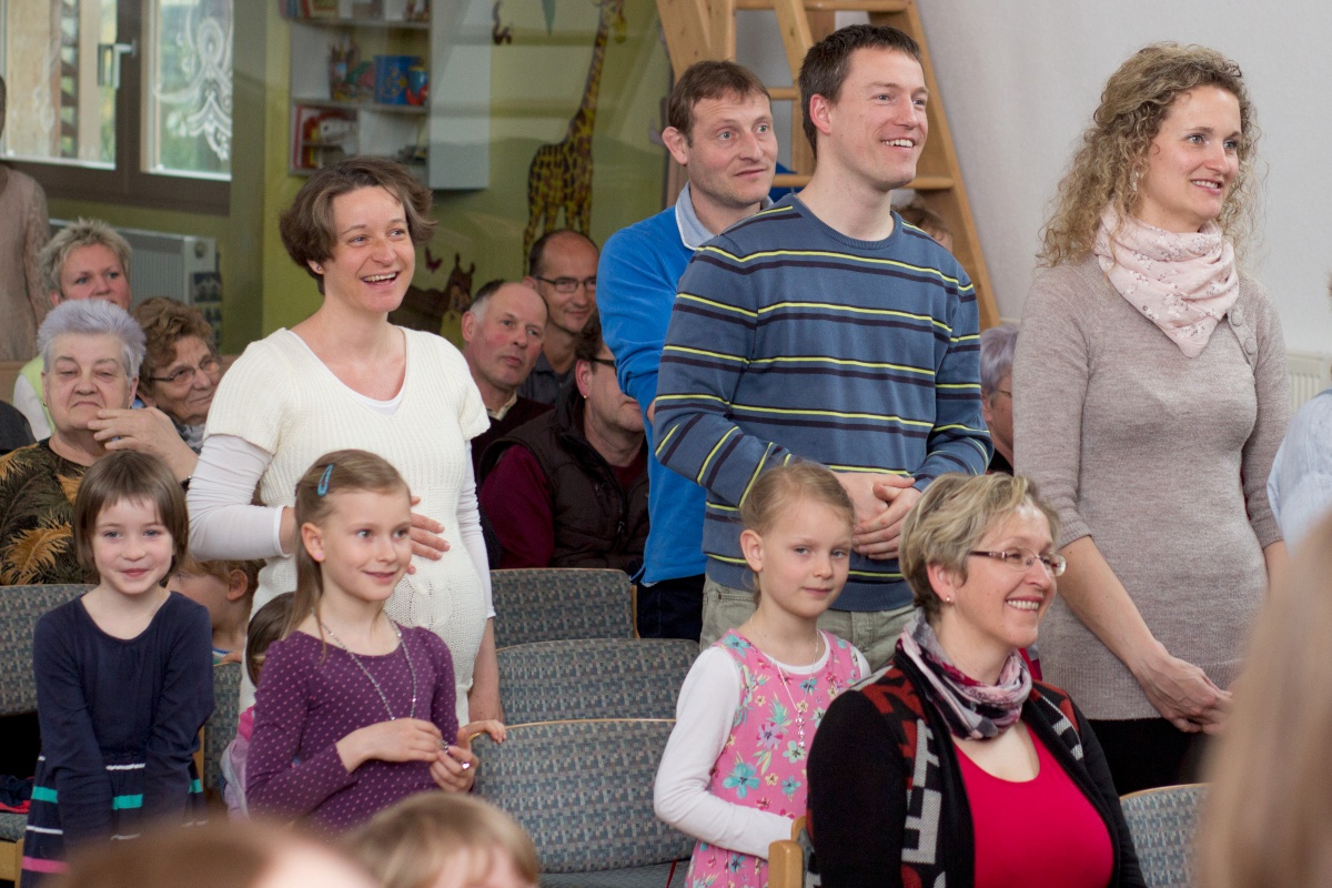 Der Gottesdienst war bunt gefüllt mit Anspiel, Musik, Aktionen und Wasser von oben. Außerdem sangen die Kita-Kinder ein Lied und Sabine Hänel wurde als neue Kita-Leiterin eingesegnet. Im Anschluss gab es leckere Snacks.