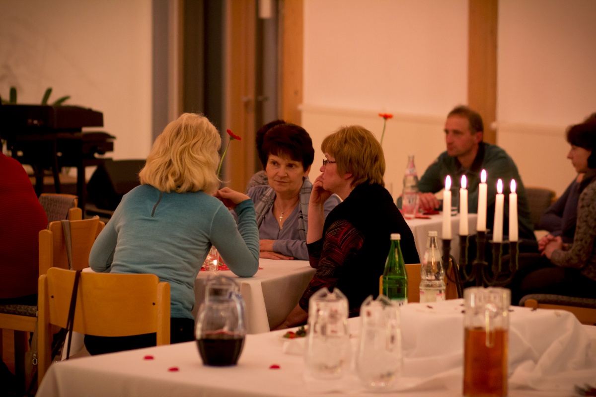 Die Referentin Christiane Rösel (Walddorfhäslach, bei Stuttgart) sprach über Wertschätzung und Lob und brachte viele persönliche Erlebnisse aus ihrem Alltag mit Beruf, Mann und drei Kindern ein. Zwischendurch gab es eine kleine Gesprächspause, wo die Gäste mit einer kleinen Köstlichkeit verwöhnt wurden.