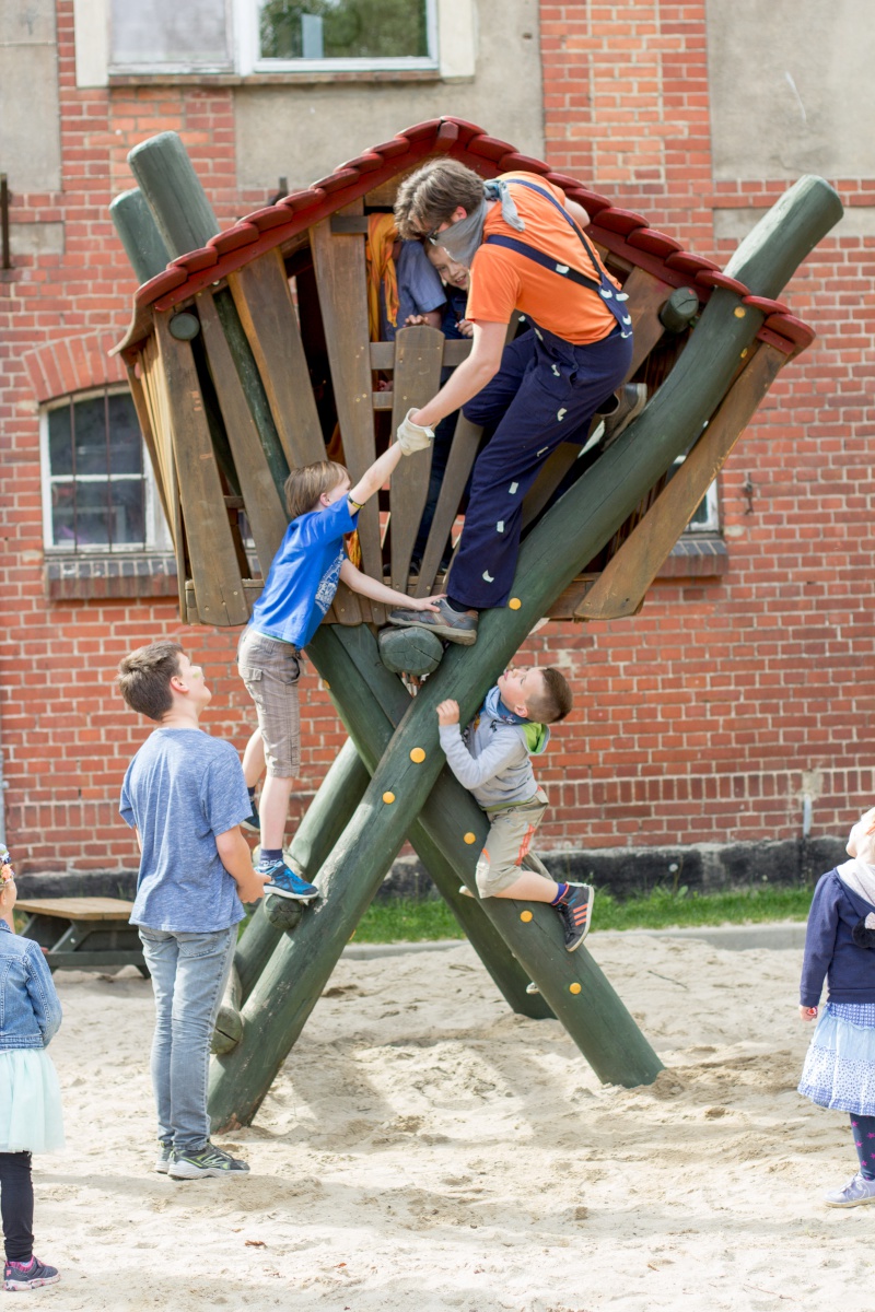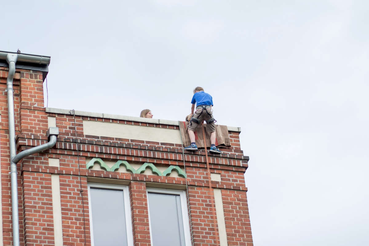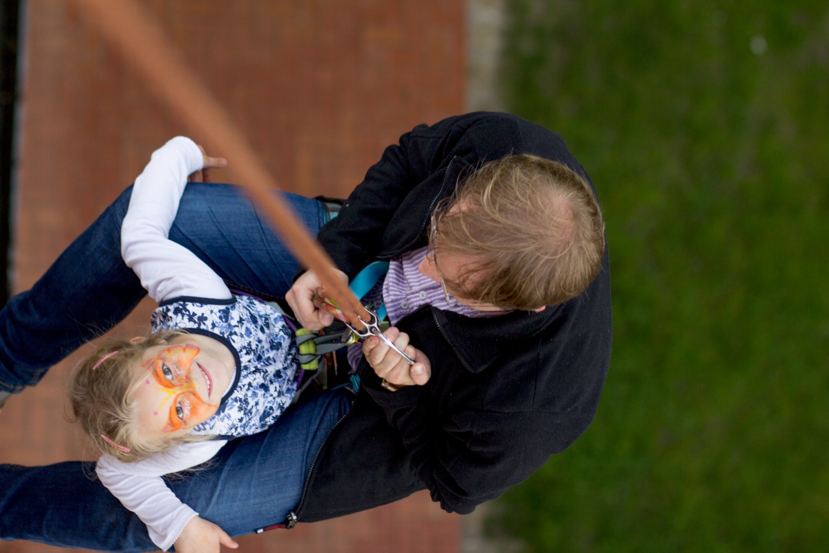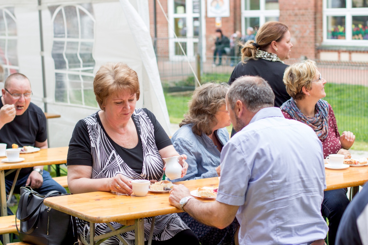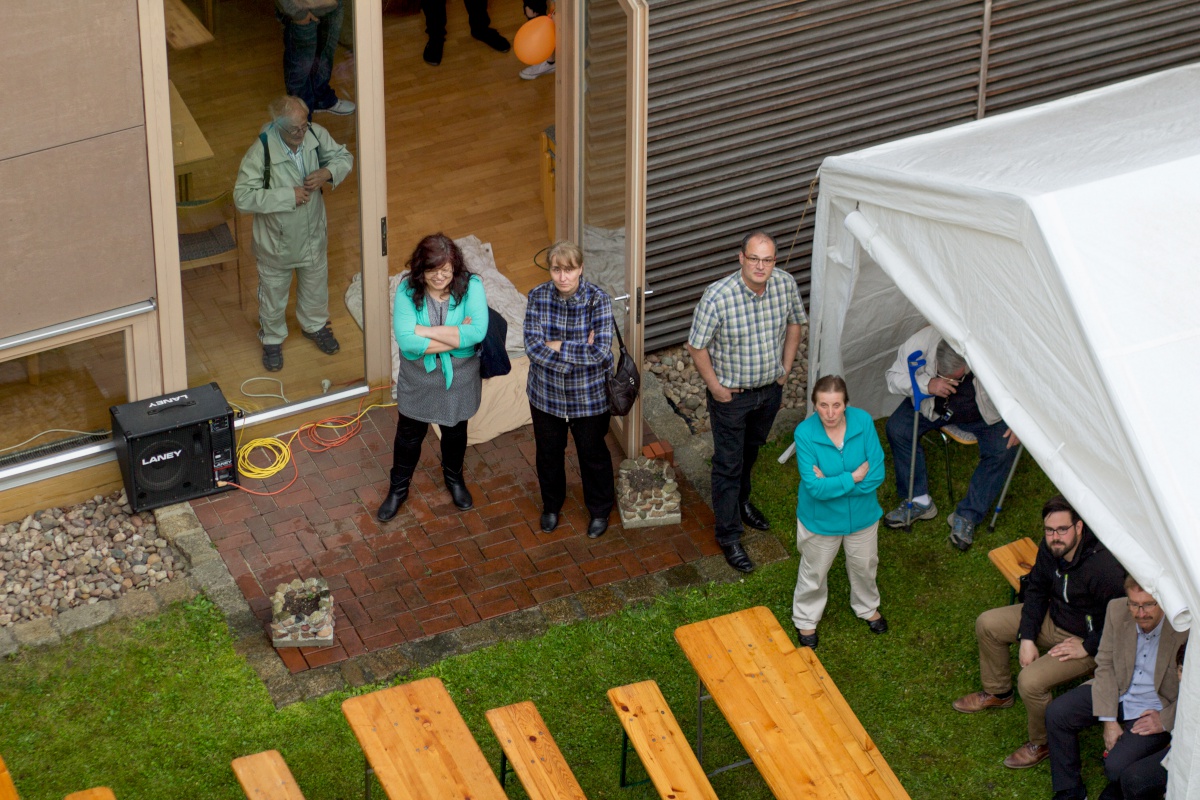Viele Menschen waren gekommen und sind auch lange geblieben. Nach dem Gottesdienst gab es außer dem Kuchenbüfett noch die Möglichkeit, eine Kahnfahrt auf der Spree zu genießen, sich mit viel Adrenalin vom Dach des Nebengebäudes abzuseilen, den Bonbonmännern ein paar Süßigkeiten abzuluchsen, Verse aus der Bibel mit Feder und Tinte abzuschreiben oder dem Ständchen des Bläserchores zu lauschen.