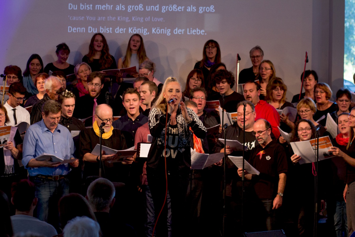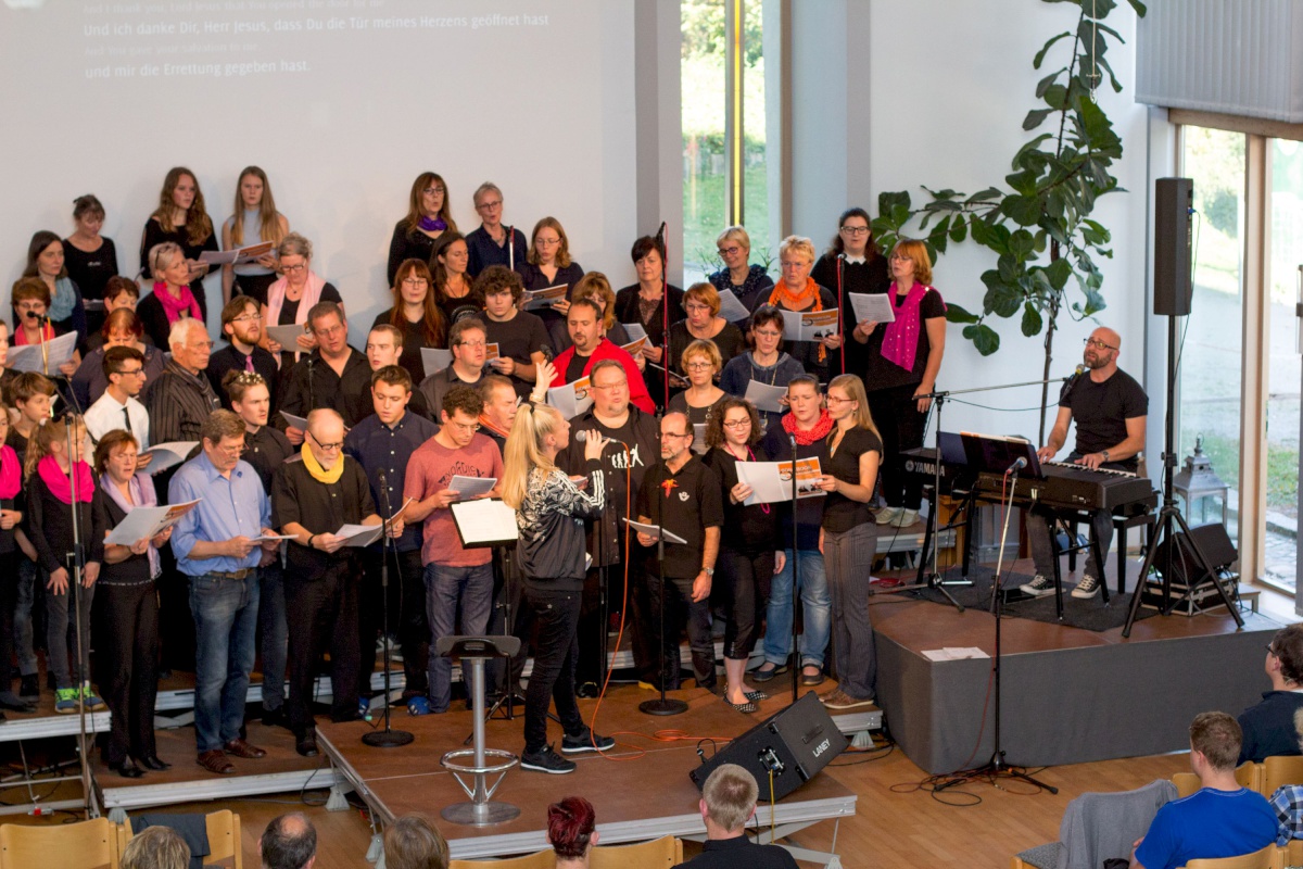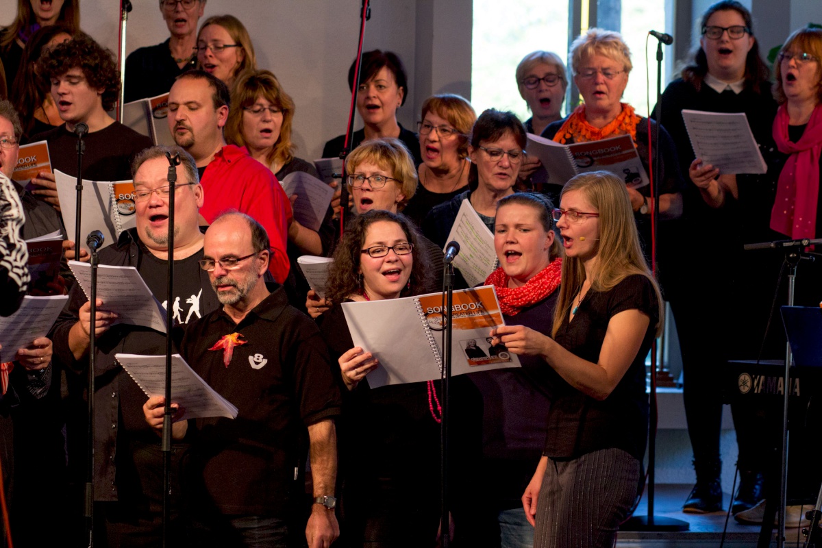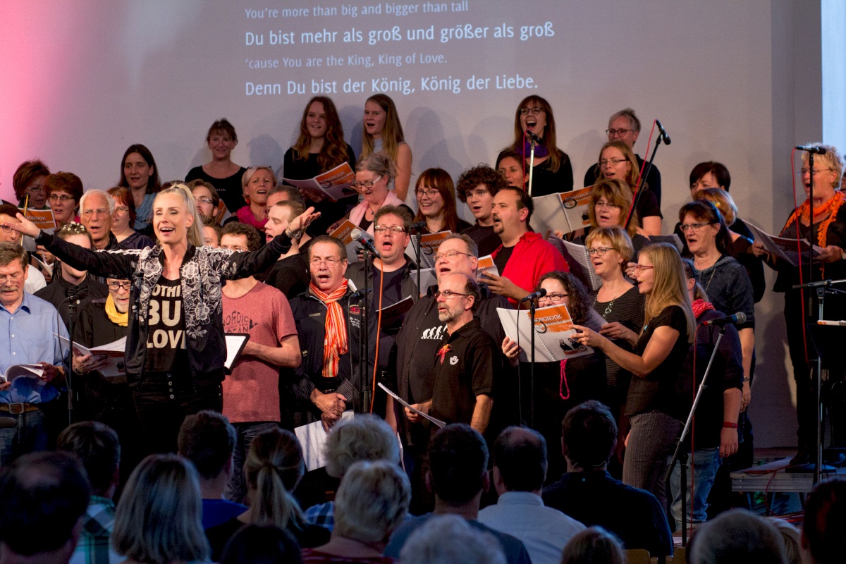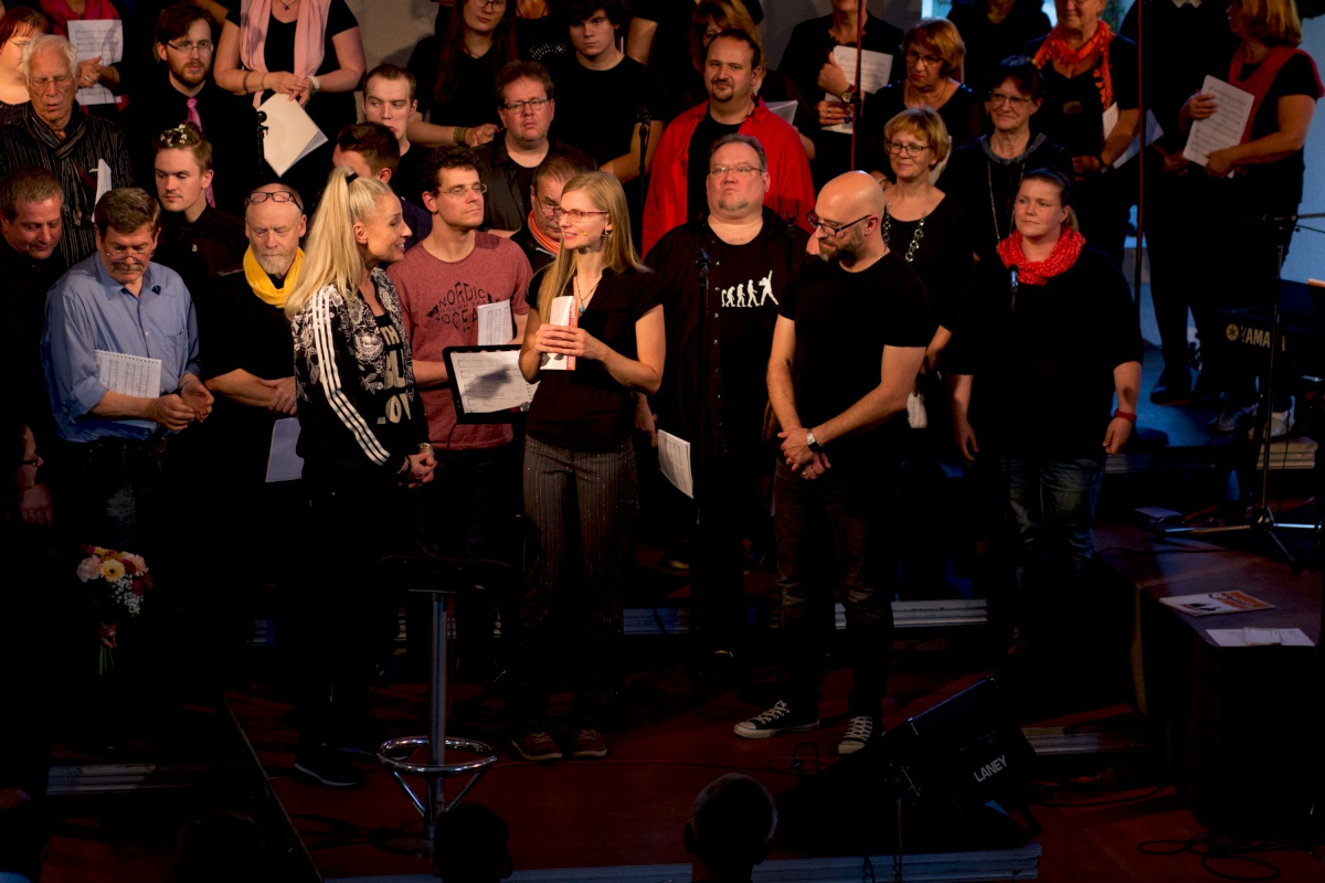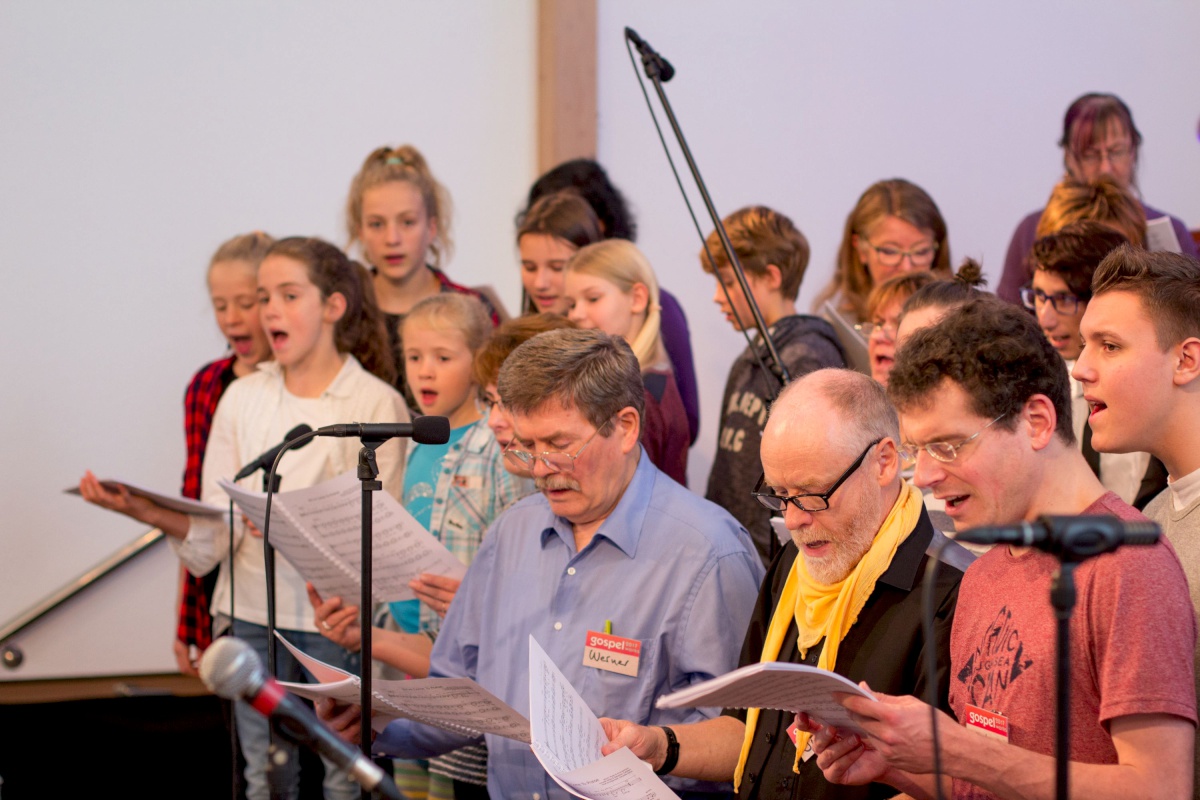 Gospeln in Spremberg ist jedes Jahr ein Ereignis. Dieses Mal knackten wir die 60-Sänger-Marke und es stand ein bunter Chor mit Teilnehmern aus Berlin, Brandenburg, Sachsen, Niedersachsen, Mecklenburg-Vorpommern und Bayern auf der Bühne. Von 9 bis 74 Jahre waren Mädchen und Jungen, Frauen und Männer dabei und sangen mit viel Gefühl und Freude die Songs von Danyelle Vanes und Sebastian Cuthbert. Das Musiker-Ehepaar aus Hildesheim brachte dem Chor viele gute Songs bei und überzeugte durch Professionalität und Hingabe zur Gospelmusik.