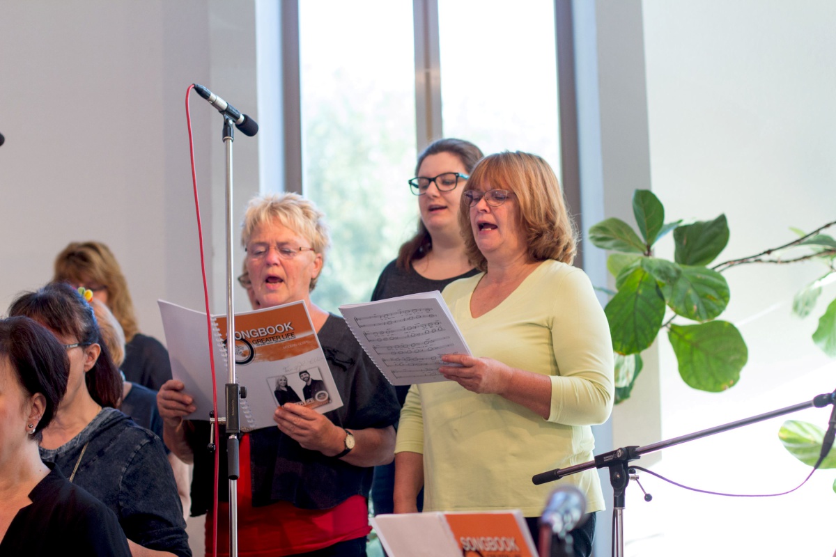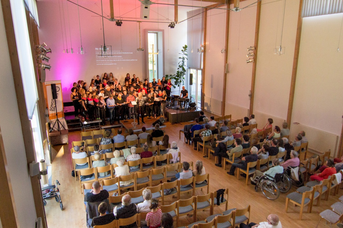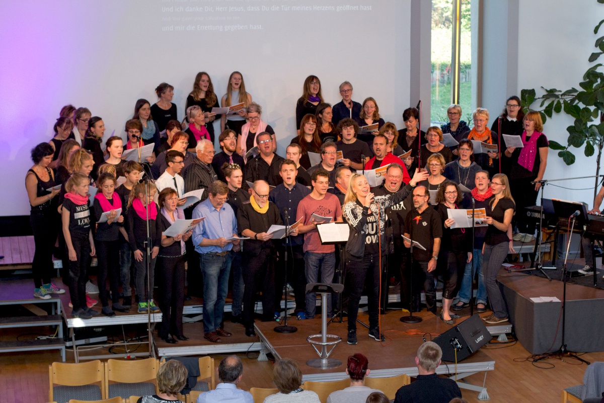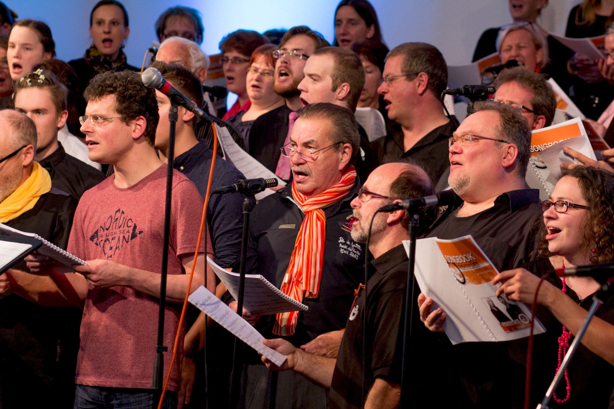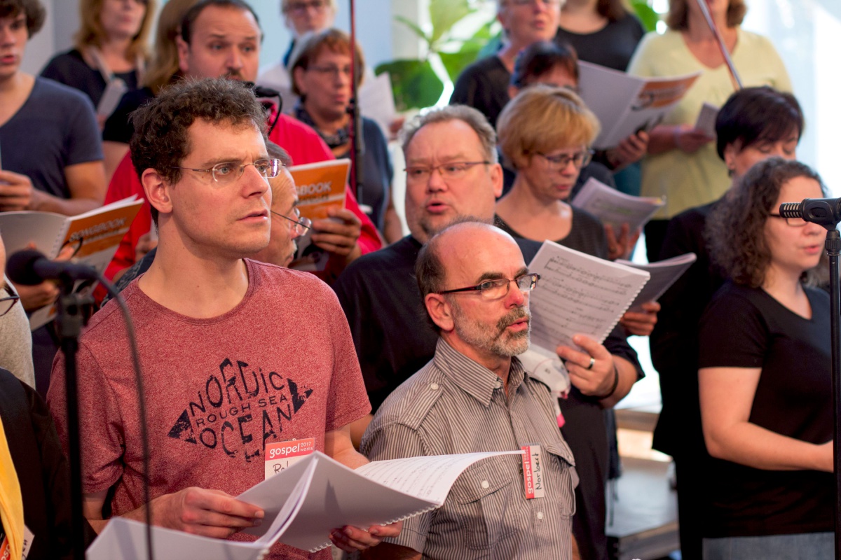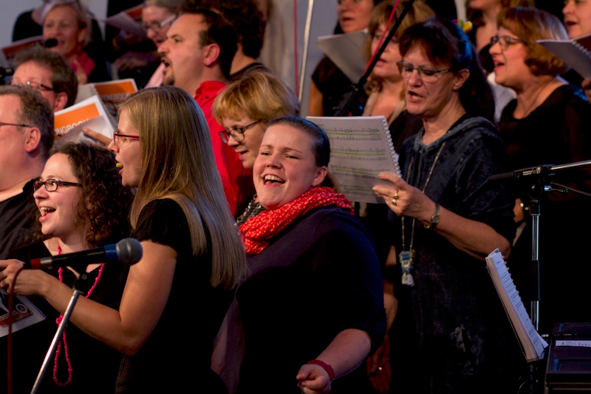 Gospeln in Spremberg ist jedes Jahr ein Ereignis. Dieses Mal knackten wir die 60-Sänger-Marke und es stand ein bunter Chor mit Teilnehmern aus Berlin, Brandenburg, Sachsen, Niedersachsen, Mecklenburg-Vorpommern und Bayern auf der Bühne. Von 9 bis 74 Jahre waren Mädchen und Jungen, Frauen und Männer dabei und sangen mit viel Gefühl und Freude die Songs von Danyelle Vanes und Sebastian Cuthbert. Das Musiker-Ehepaar aus Hildesheim brachte dem Chor viele gute Songs bei und überzeugte durch Professionalität und Hingabe zur Gospelmusik.