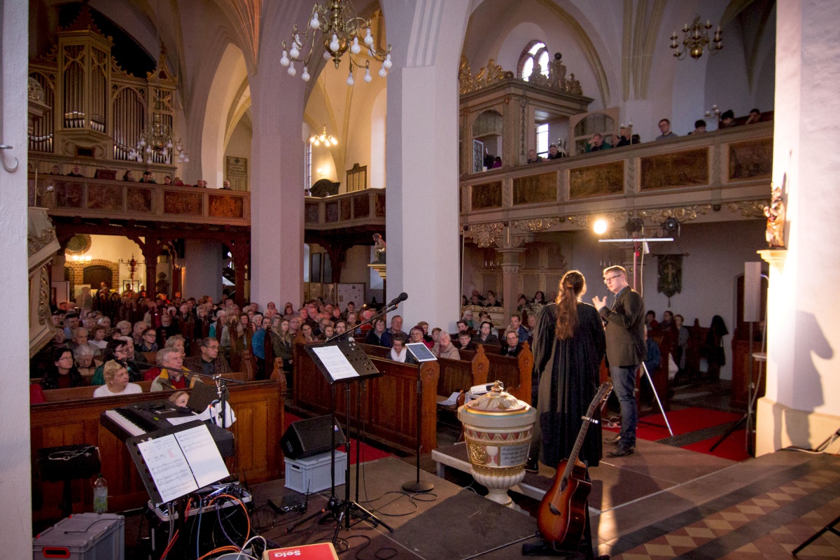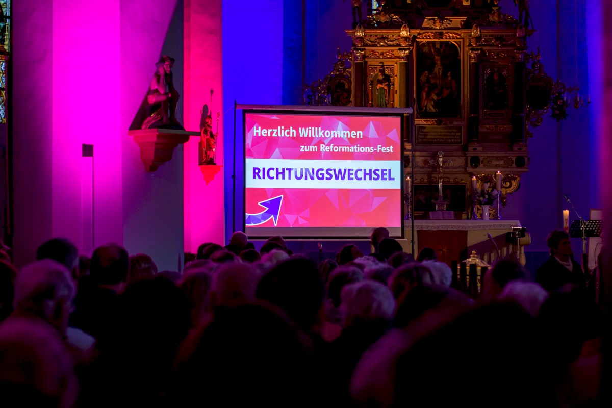 Pfarrerin Sabine Ernst und Prediger Andreas Heydrich führten durch den Gottesdienst und gingen in der Dialogpredigt darauf ein, dass Reformation nicht nur vor 500 Jahren aktuell war, sondern auch heute noch notwendig ist und im persönlichen Leben für den ein oder anderen Richtungswechsel sorgen kann.