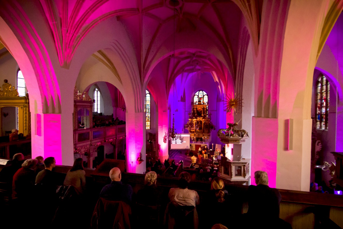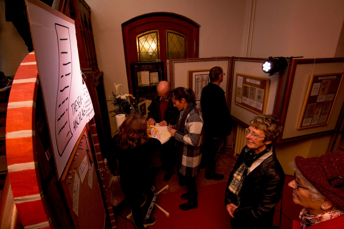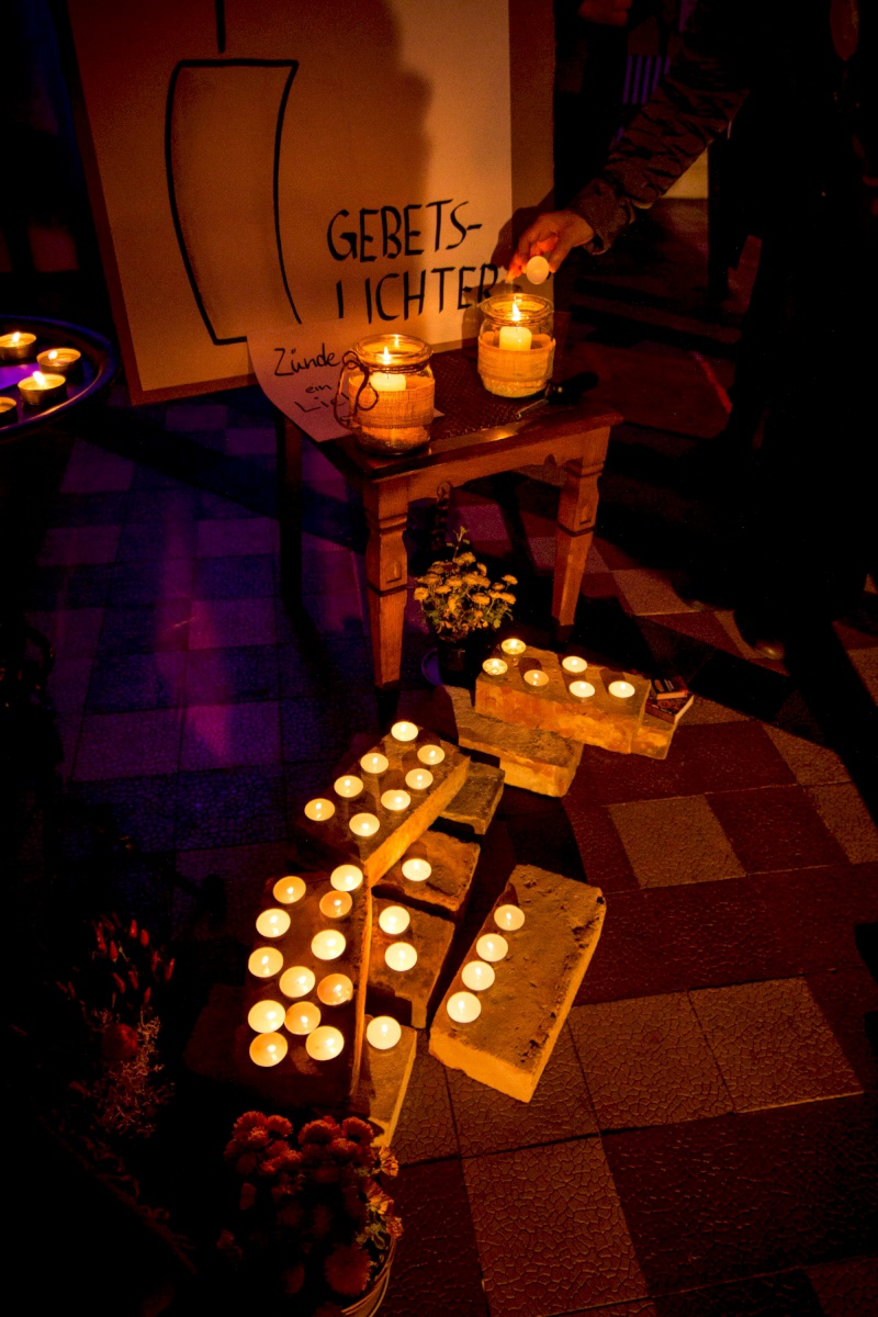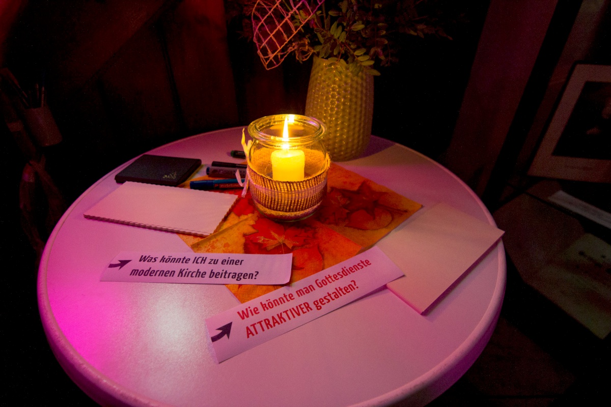 Nach dem Fest-Gottesdienst war Zeit für Gespräche und dafür, die Stationen in der Kirche zu entdecken: Gebetslichter anzünden, Thesen für die „Kirche von heute“ formulieren, sich segnen oder durch einen Bibelvers ermutigen lassen.