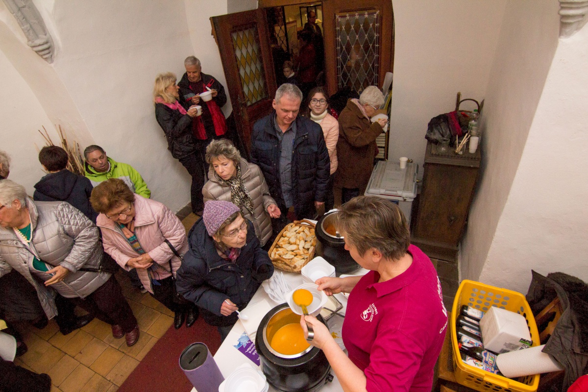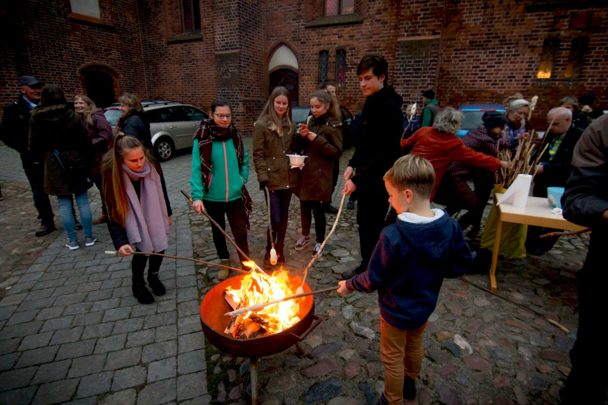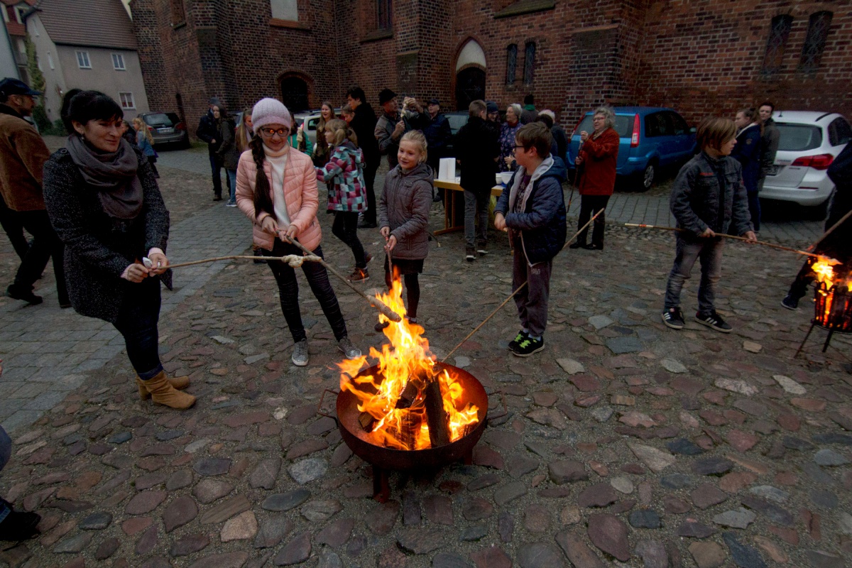 In der Taufkapelle gab es Gulasch- und Kürbissuppe sowie warme Getränke. Auf dem Kirchplatz brannten Lagerfeuer und jeder der wollte, konnte sich sein eigenes Stockbrot backen.