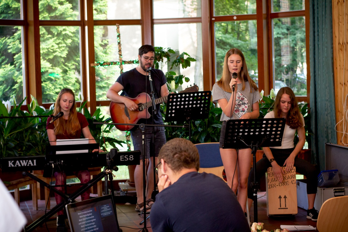 Lisa brachte in einer frischen und authentischen Art Gottes Wort rüber und sprach von den Wurzeln des Glaubens und der Menschheit. Luisa und Flauschi übernahmen die Moderation und die Band (Josi, Marie, Emilia und Ben) sorgten mit peppigen und souligen Klängen für gute Musik.