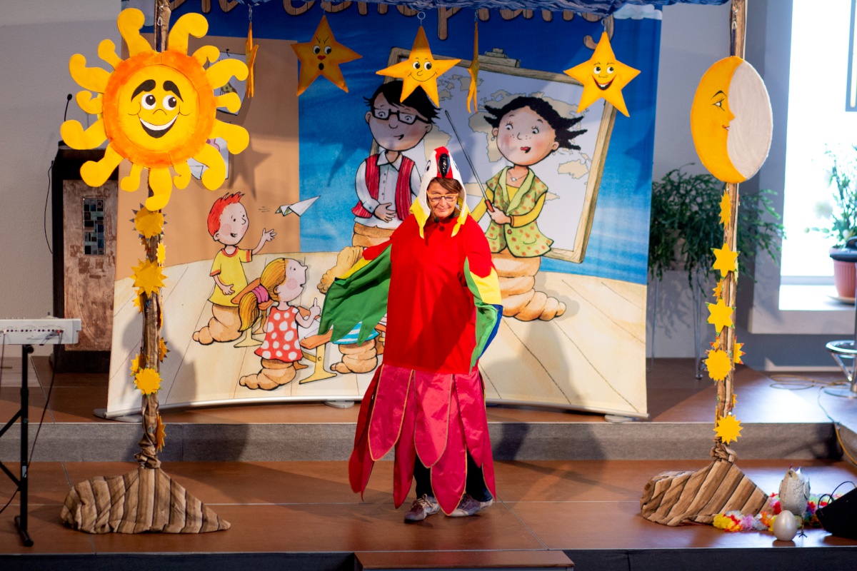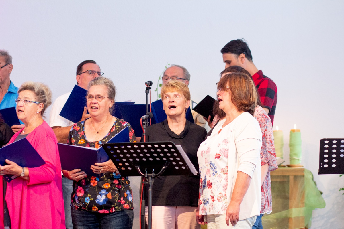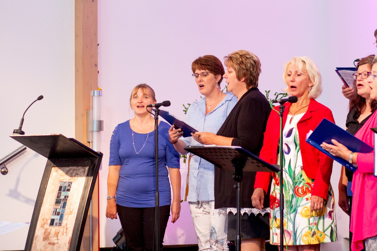 Der Start konnte nicht besser sein: Ein bunter Gottesdienst, gefüllt mit fröhlicher Musik, einer ansprechenden Predigt, berührender Chormusik und einer spritzigen Moderation. Parallel dazu gab es für 30 Kids eine Kinderstunde mit Liedern, Geschichten und Bastelaktion.