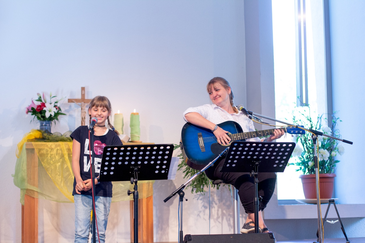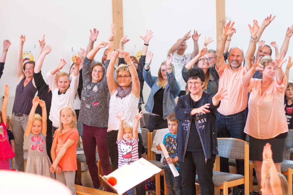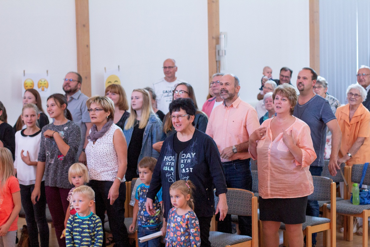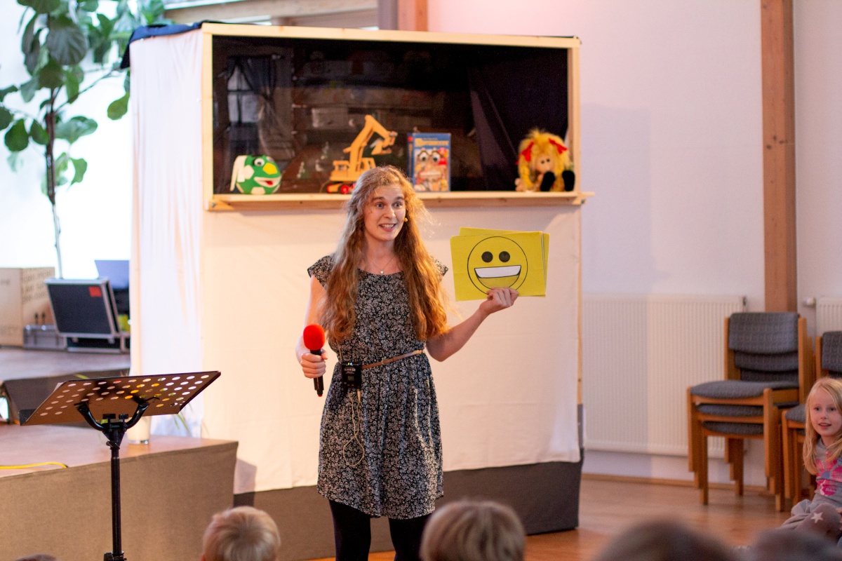 Beim Puppenspiel „Nachts im Spielzeugladen“ trafen dann alle Gefühle aufeinander: Ein lustiger Ball..Ball.. Ball, traf auf den entnervten Bagger; ein ernstes Gesellschaftsspiel auf eine traurige Puppe. Alle Gefühle wurden in der Predigt von Katharina Kleiner aufgegriffen und mit biblischen Beispielen untermalt. Im Anschluss gab es ein reichhaltiges Buffett mit vielen Smileys, Kuchen und Pizzabrötchen, das allen Besuchern beim Verzehr ein Lächeln auf das Gesicht zauberte.