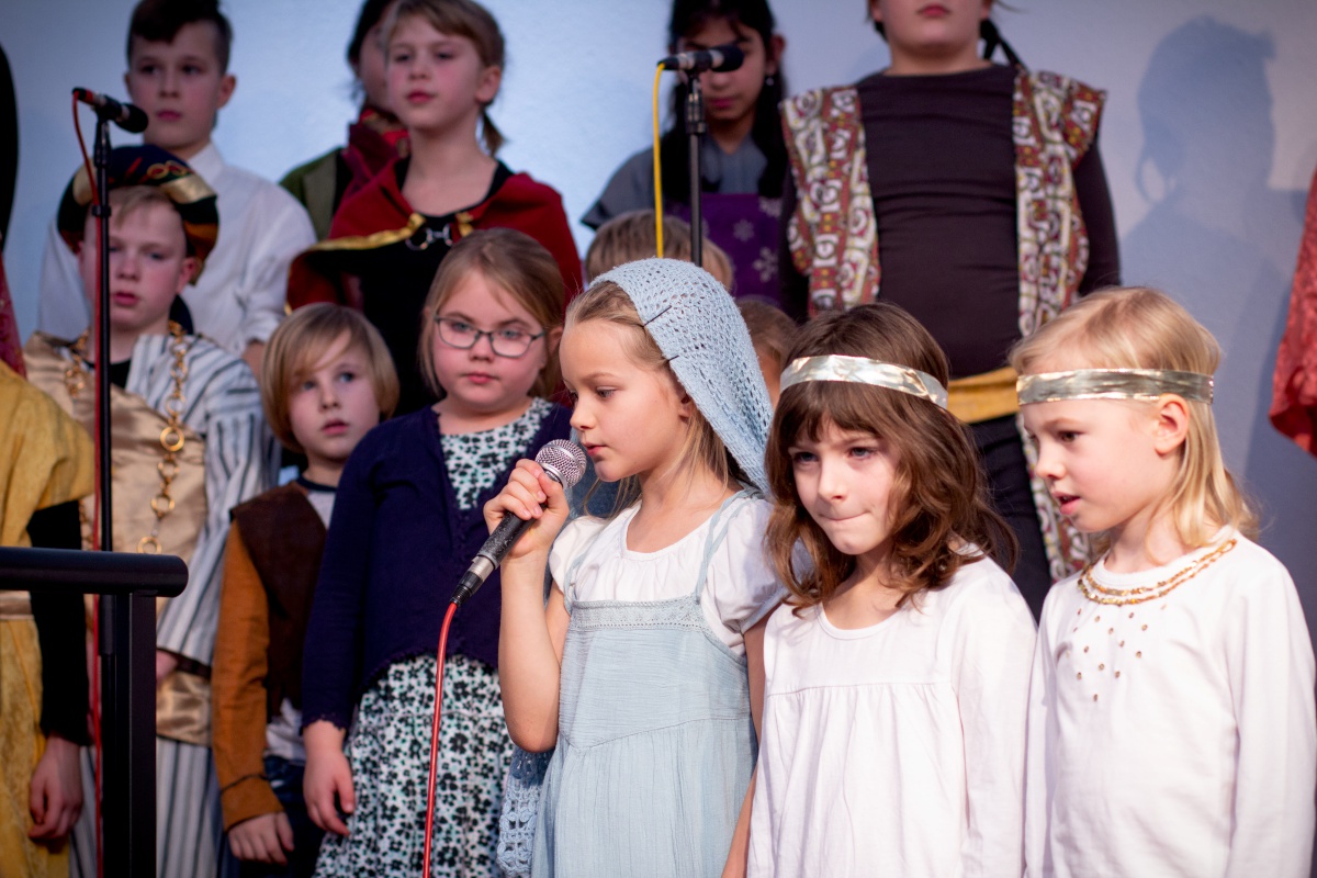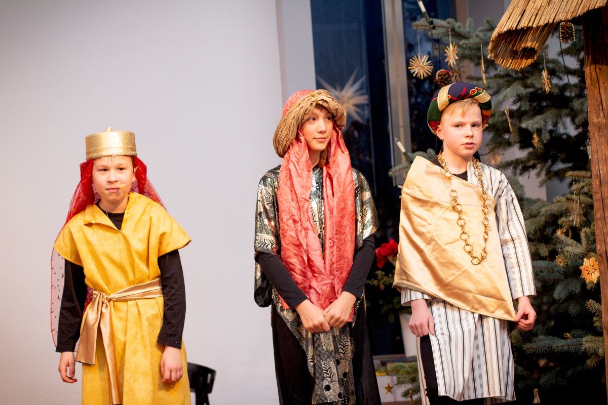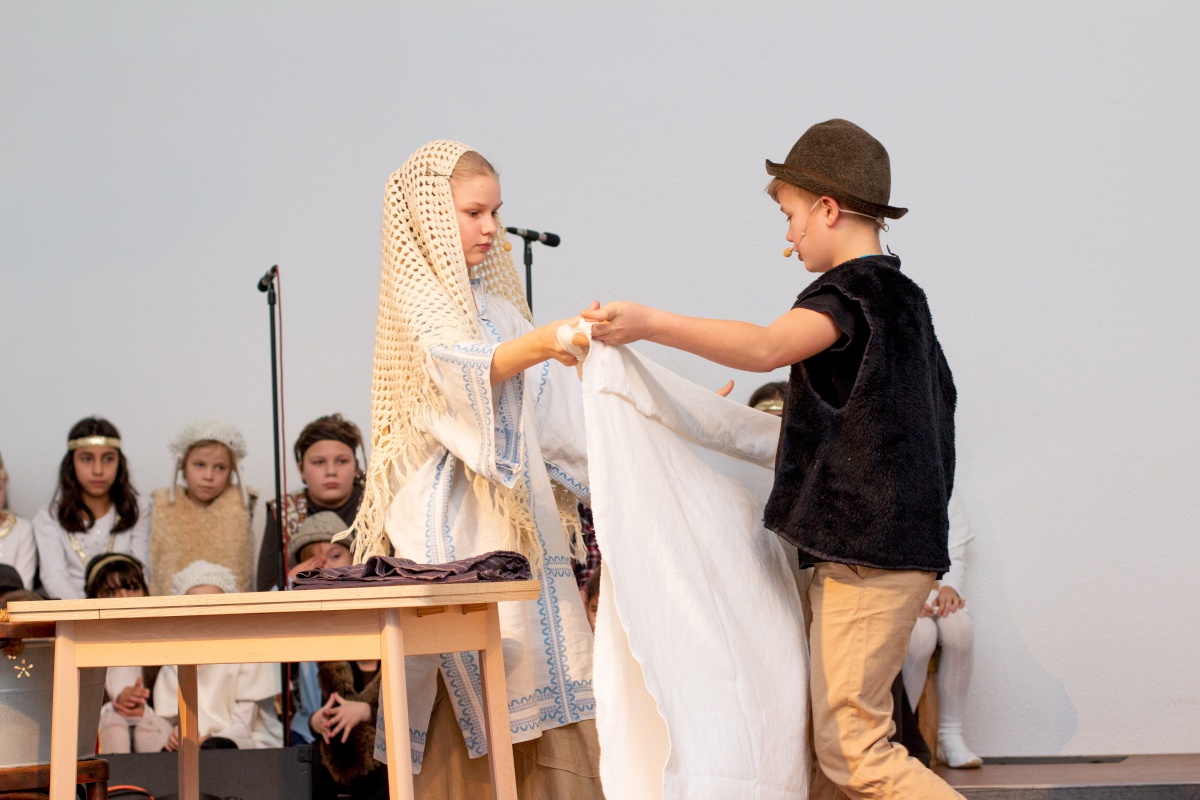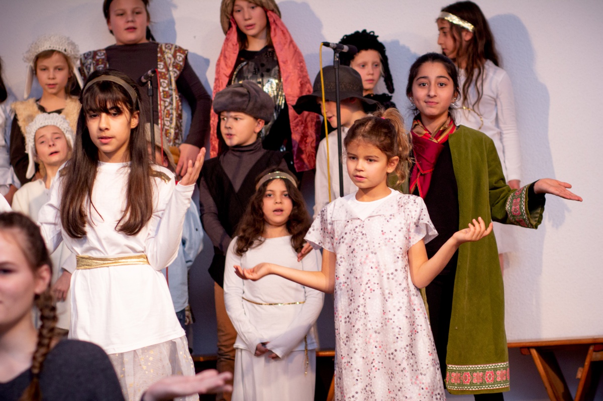 Gemeinsam haben sie an den sieben Samstagen vor Weihnachten das Musical „Stern über Bethlehem“ einstudiert. In den Proben wurden die Lieder gelernt, die Szenen geprobt, aber auch an den Kostümen, dem Licht und der Technik gefeilt.