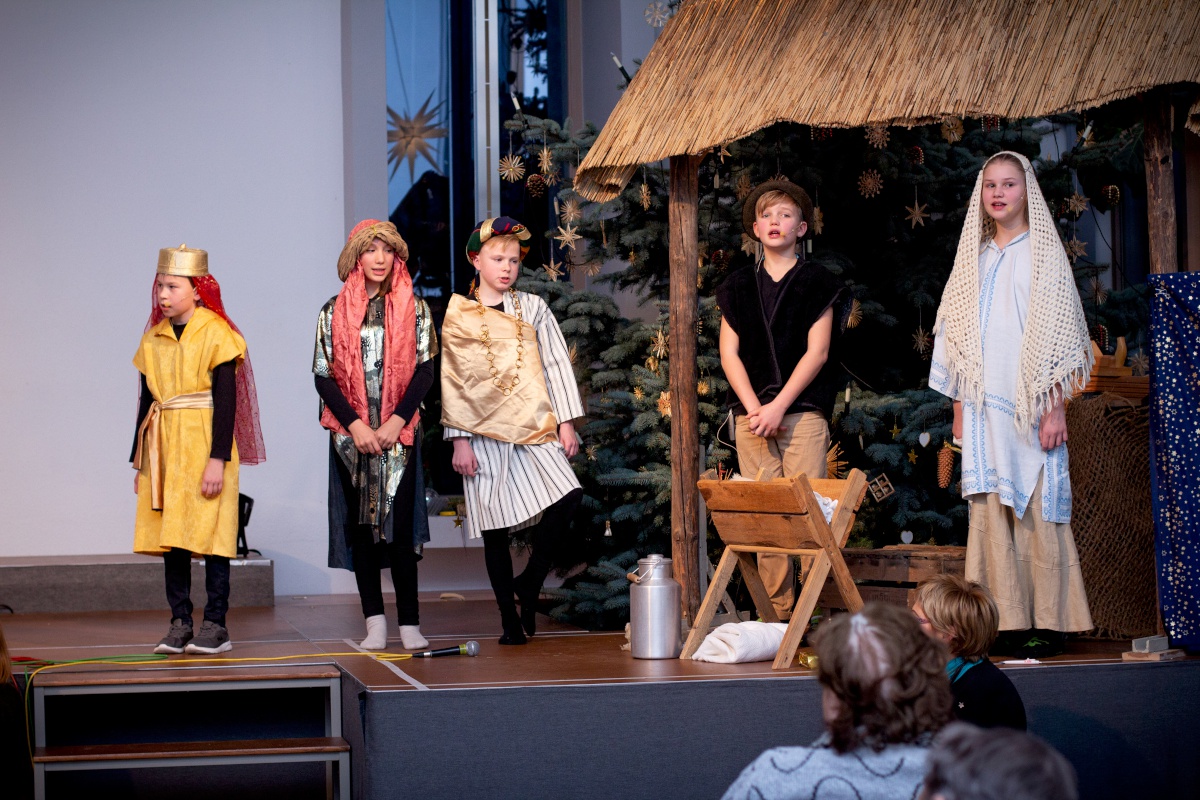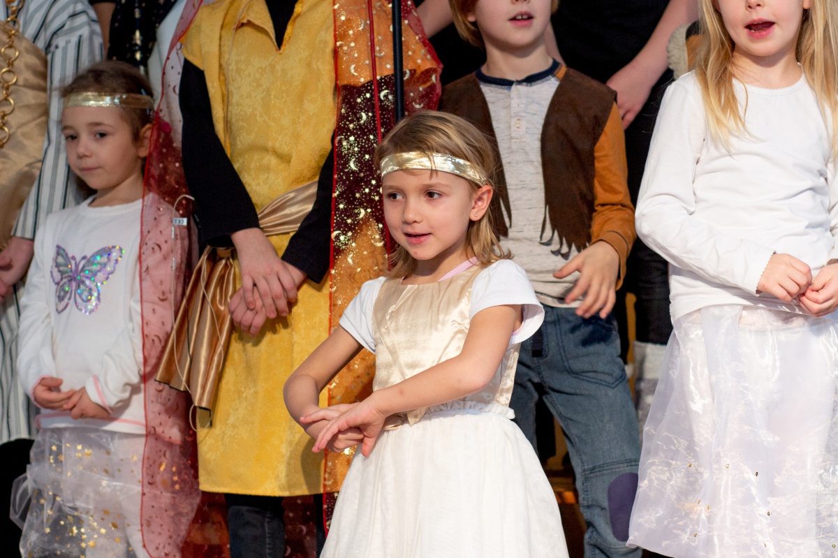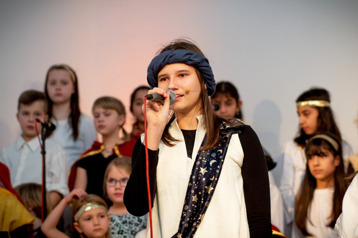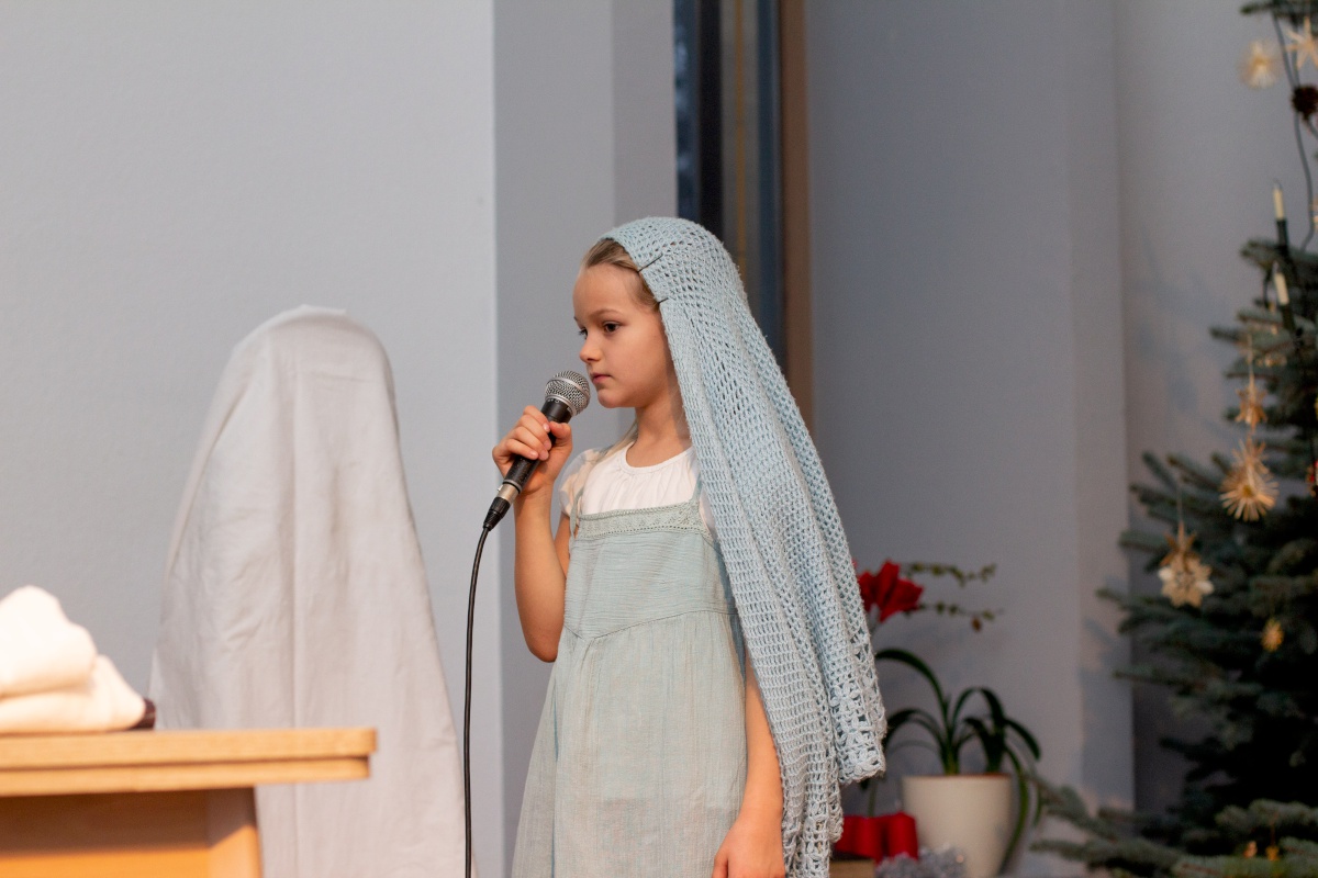 Gemeinsam haben sie an den sieben Samstagen vor Weihnachten das Musical „Stern über Bethlehem“ einstudiert. In den Proben wurden die Lieder gelernt, die Szenen geprobt, aber auch an den Kostümen, dem Licht und der Technik gefeilt.