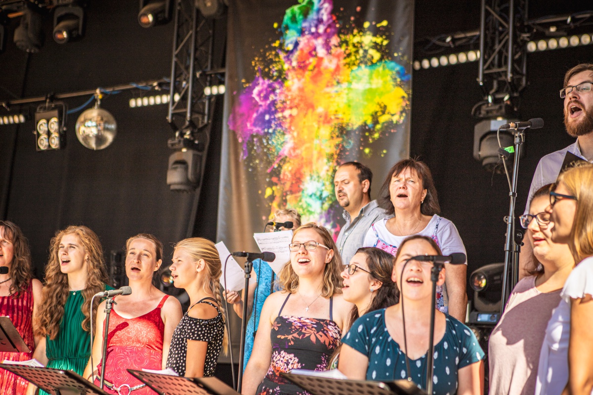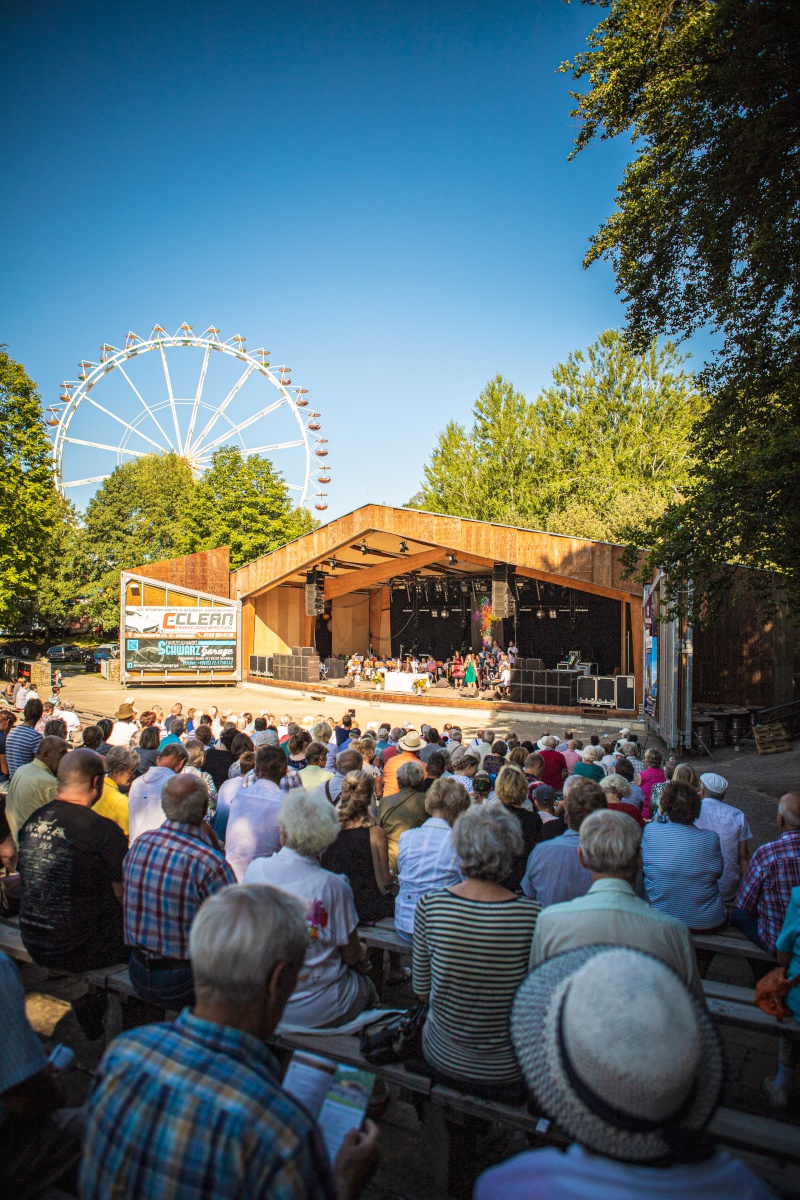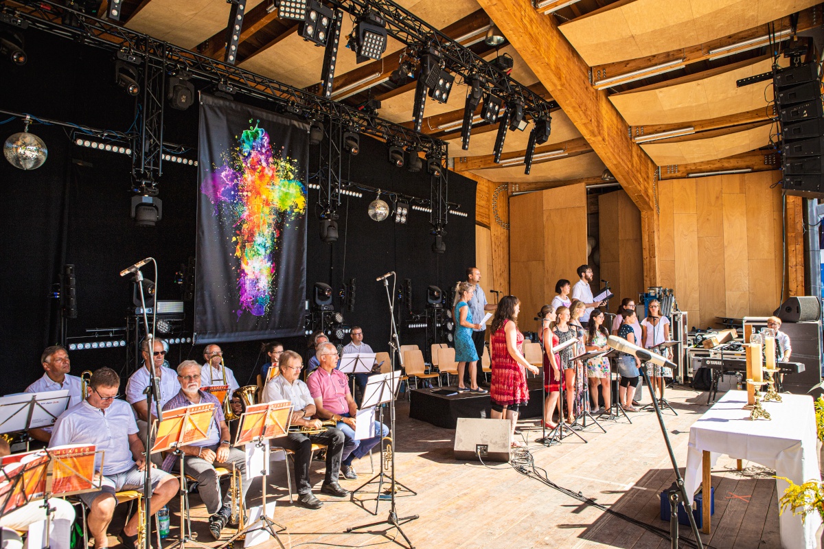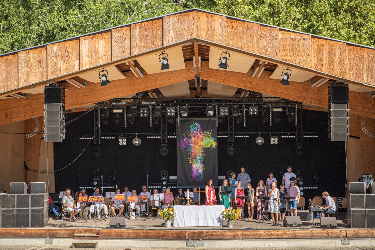Am Sonntagvormittag des 11. Augustes  trafen sich ca. 250 Besucher zum Gottesdienst auf der Freilichtbühne.