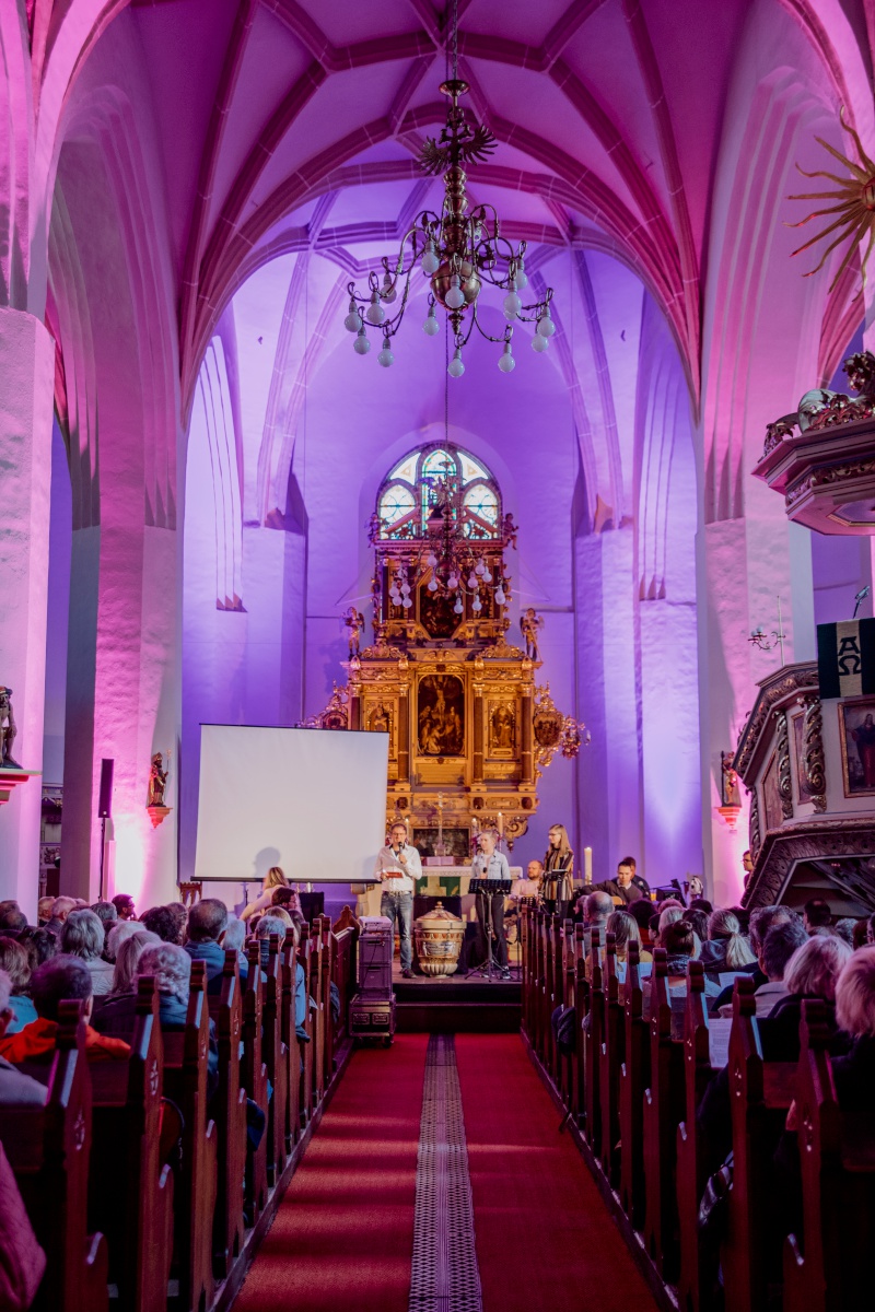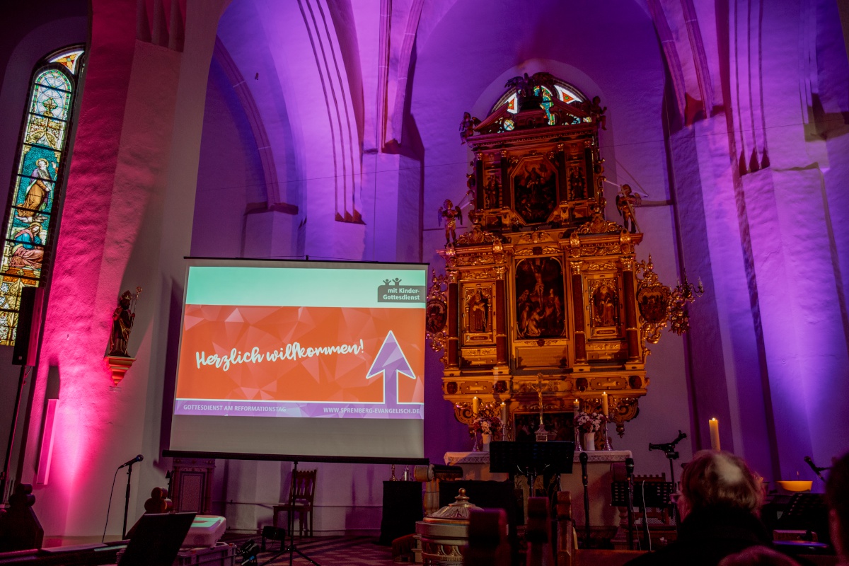 Einen ansprechenden Gottesdienst erlebten wir am Reformationstag in der Kreuzkirche. Ansprechend fürs Auge – das Lichtarrangement ließ das Kirchenschiff wieder besonders schön erstrahlen und ansprechend fürs Herz: Durch berührende Lieder, ein packendes Anspiel, eine lebensnahe und bejahende Predigt sowie durch eine frische Moderation wurden die Besucher abgeholt und mit hinein genommen in das Thema des Gottesdienstes „Jesus, unser Licht der Welt“.