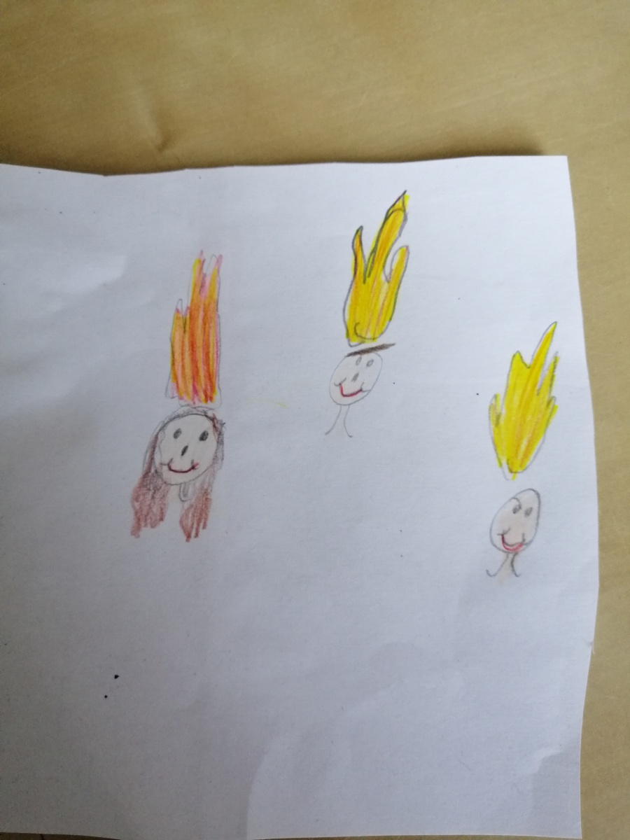 Letzen Sonntag ging es in der Kinderstunde um den Heiligen Geist! Die Kinder haben verschiedene Szenen aus der Pfingst-Geschichte gemalt.