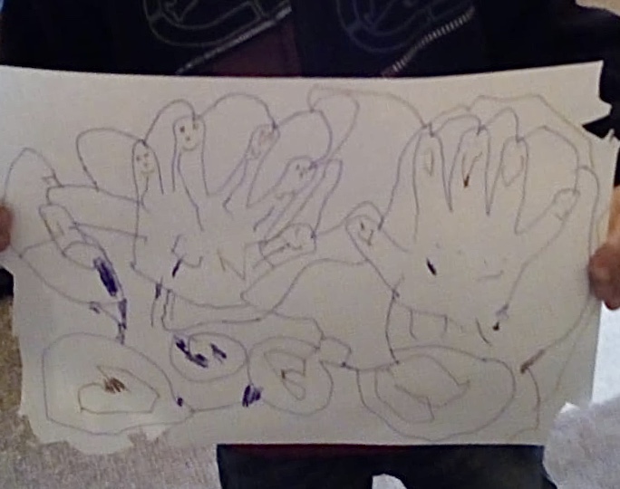 Diesmal sollten die Kinder ein Bild von sich und ihrem besten Freund malen.