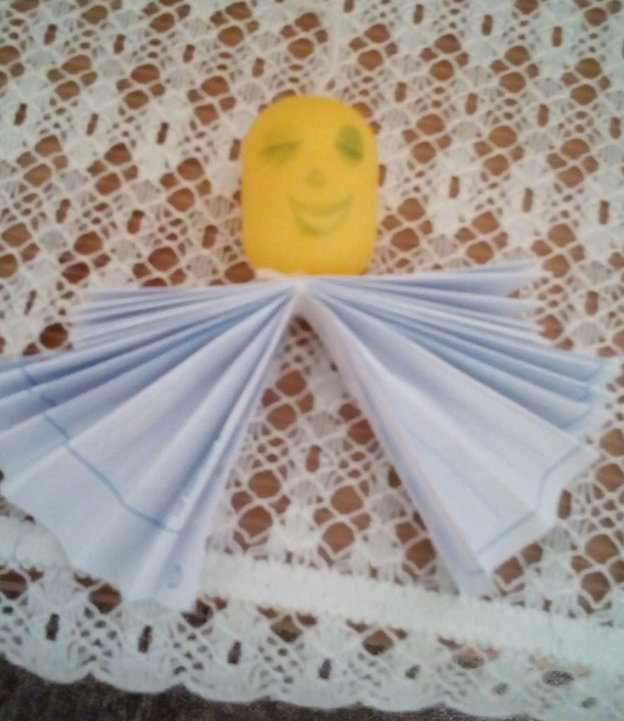 In der Kinderstunde wurde die Geschichte erzählt wie Jesus in den Himmel aufgefahren ist. Wo er eben noch gestanden hat, war nun ein Engel. Den konnten die Kinder basteln.
