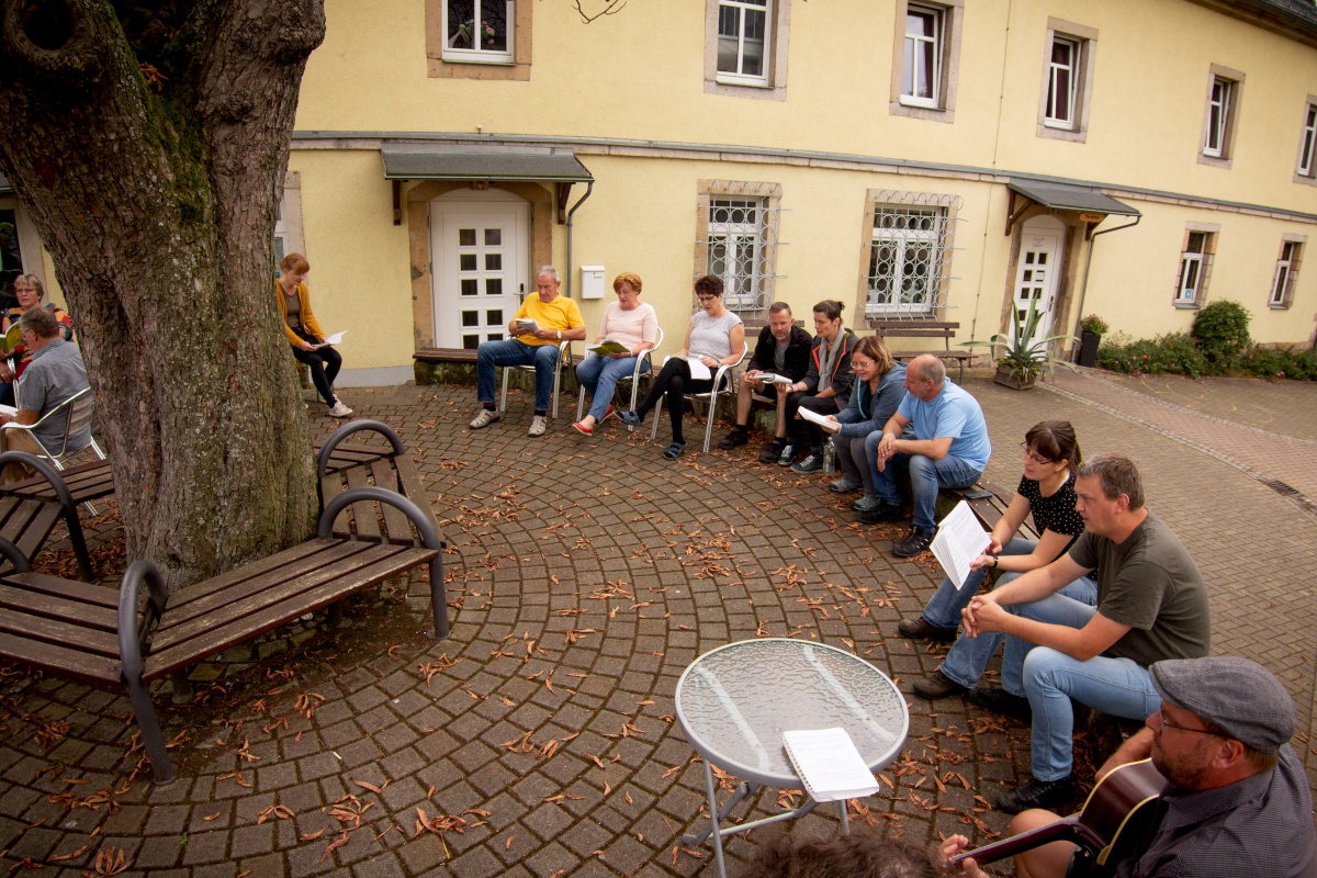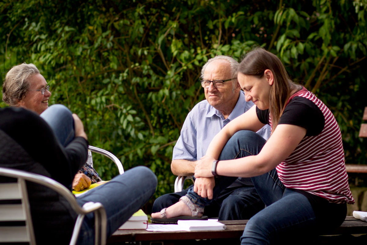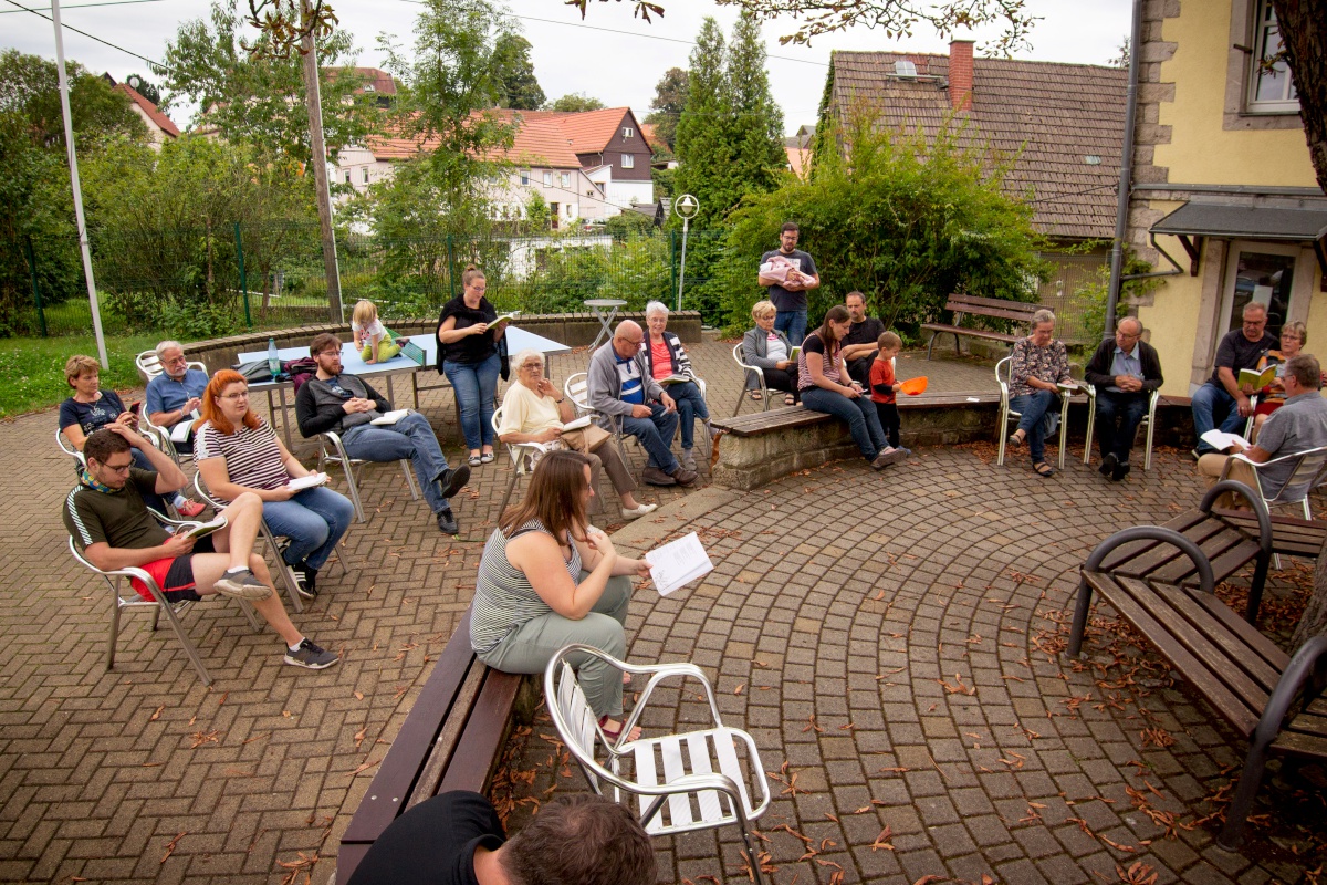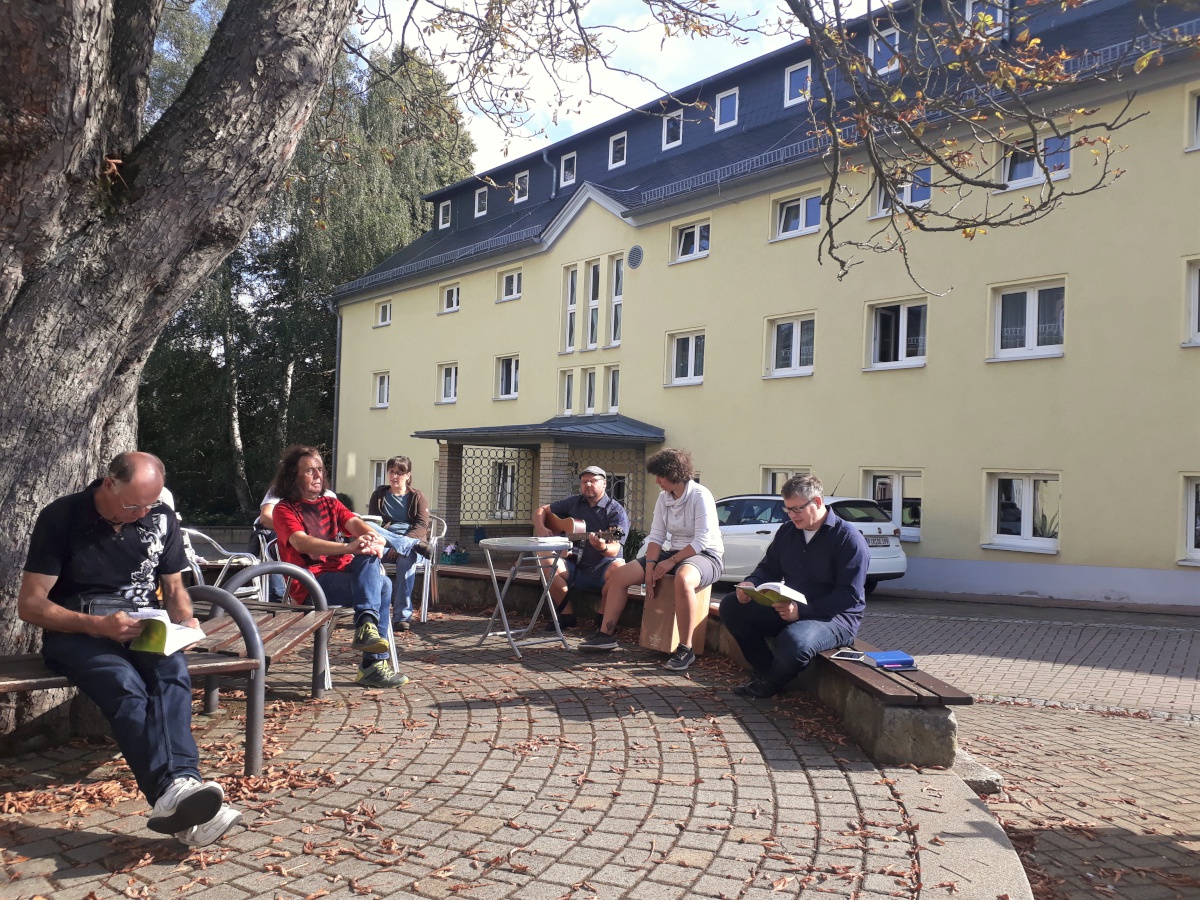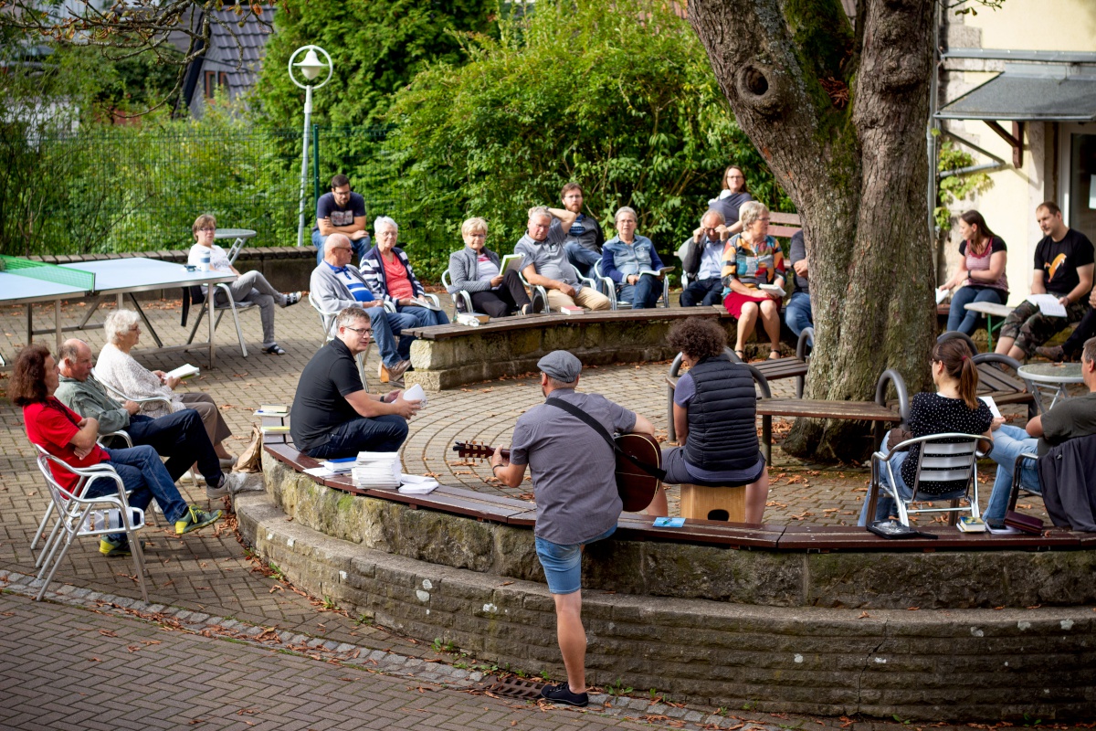 Am Samstagvormittag gab es eine Bibelarbeit unter freiem Himmel, die sehr abwechslungsreich war. Kleingruppen, die sich aus ganz unterschiedlichen Teilnehmern zusammensetzten, beschäftigten sich mit verschiedenen biblischen Personen und unterhielten sich ganz persönlich über Fragen zum eigenen Leben.