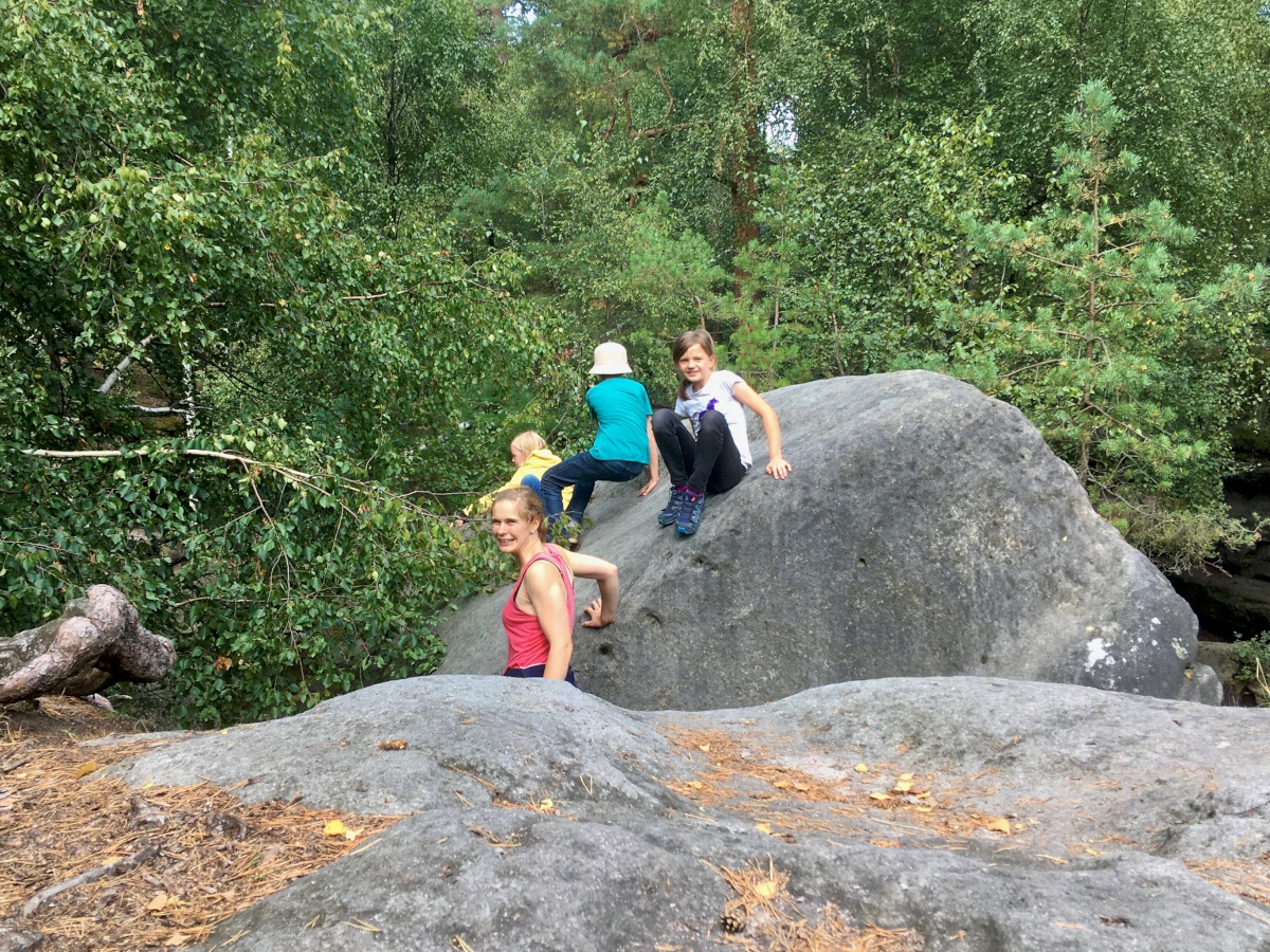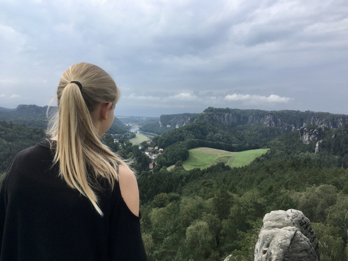 Nach einem leckeren Mittagessen in der Jugendherberge (das Essen war eigentlich immer lecker!), war Zeit für Ausflüge. Kleine Grüppchen fanden sich und machten sich per Fuß oder mit dem Auto auf zu verschiedenen Zielen: Schrammsteine, Gamrig, Hockstein, Elbe, Kirnitzschtal, Bad Schandau, Luchsgehege…