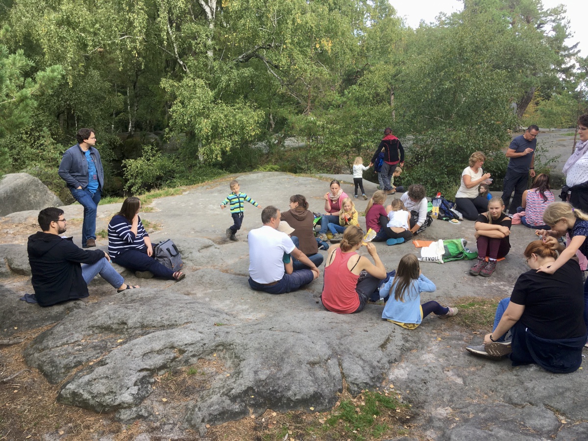 Nach dem Mittagessen folgte schon die Verabschiedung. Spontan fand sich noch eine Gruppe, die zum Felsenlabyrinth bei Langenhennersdorf aufbrechen wollte. Schnell wurden aus anfangs 9 > 23 Personen, welche die Freizeit in Felsenschluchten und auf Gipfelplateaus ausklingen ließen.