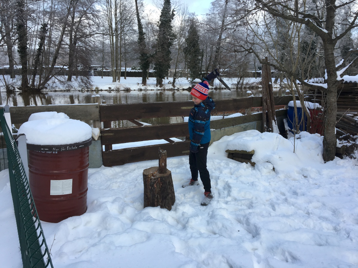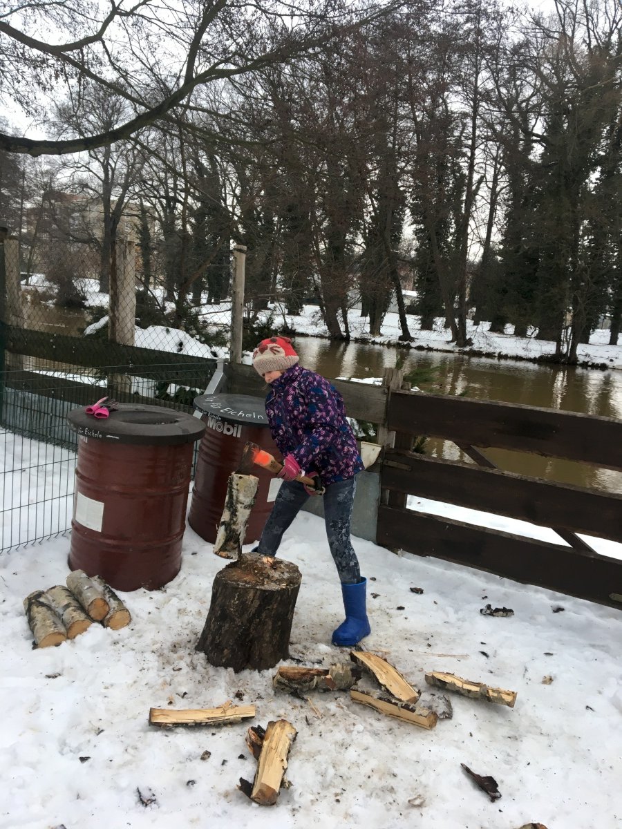 Wir haben es uns zur Aufgabe gemacht, Holz für bessere Zeiten klein zu machen. Denn, wenn es die Corona-Situation zulässt, möchten wir wieder als ganze Gruppe die gemeinsame Zeit am Lagerfeuer genießen!