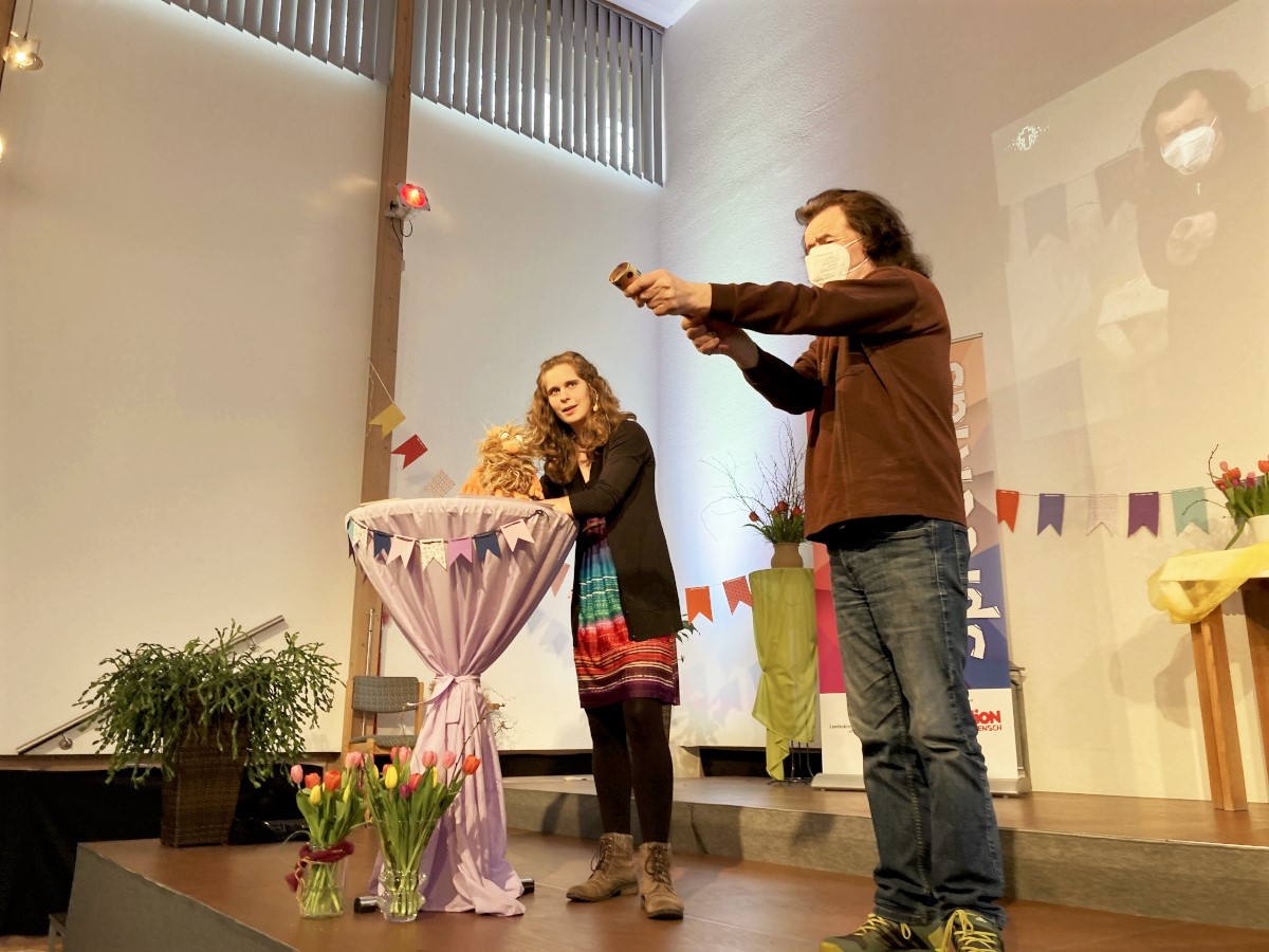 Das wissen auch unsere Pfadfinder und Pfadfinderinnen. Sie erzählten uns per Video, was für sie persönlich ein Segen ist. Zum Beispiel, gute Freunde in der Schule zu haben oder Holz zu hacken. Ebenso entdeckten die beiden Schafe Marie und Pauli aus dem Puppenspiel, wie man mit Kuchen Segen an andere verteilen kann. Sophie Eschenhorn brachte uns in der Predigt sehr eindrücklich nahe, dass wir IMMER gesegnet sind. Auch dann wenn wir uns manchmal nicht so fühlen.