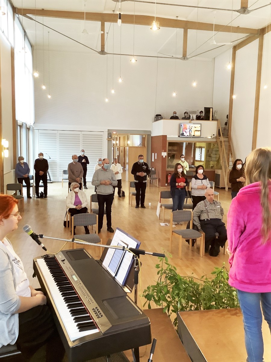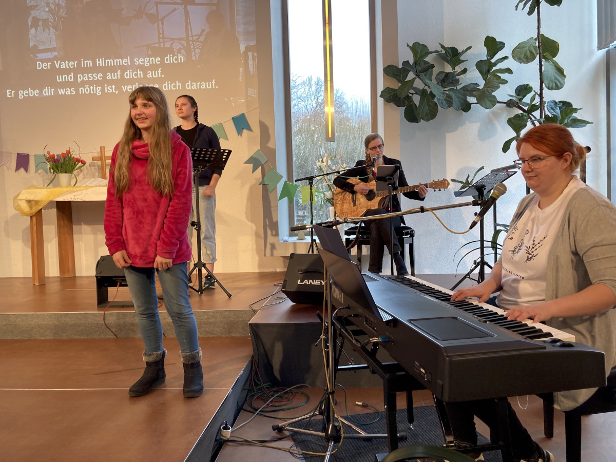 Für das Team und die Gottesdienstbesucher im Saal war es schon ein wenig merkwürdig, bei einem Familiengottesdienst gar keine Kinder zu hören und zu sehen. Dennoch hatten wir eine gute Zeit und konnten die wunderschöne Live-Musik unserer Band genießen.