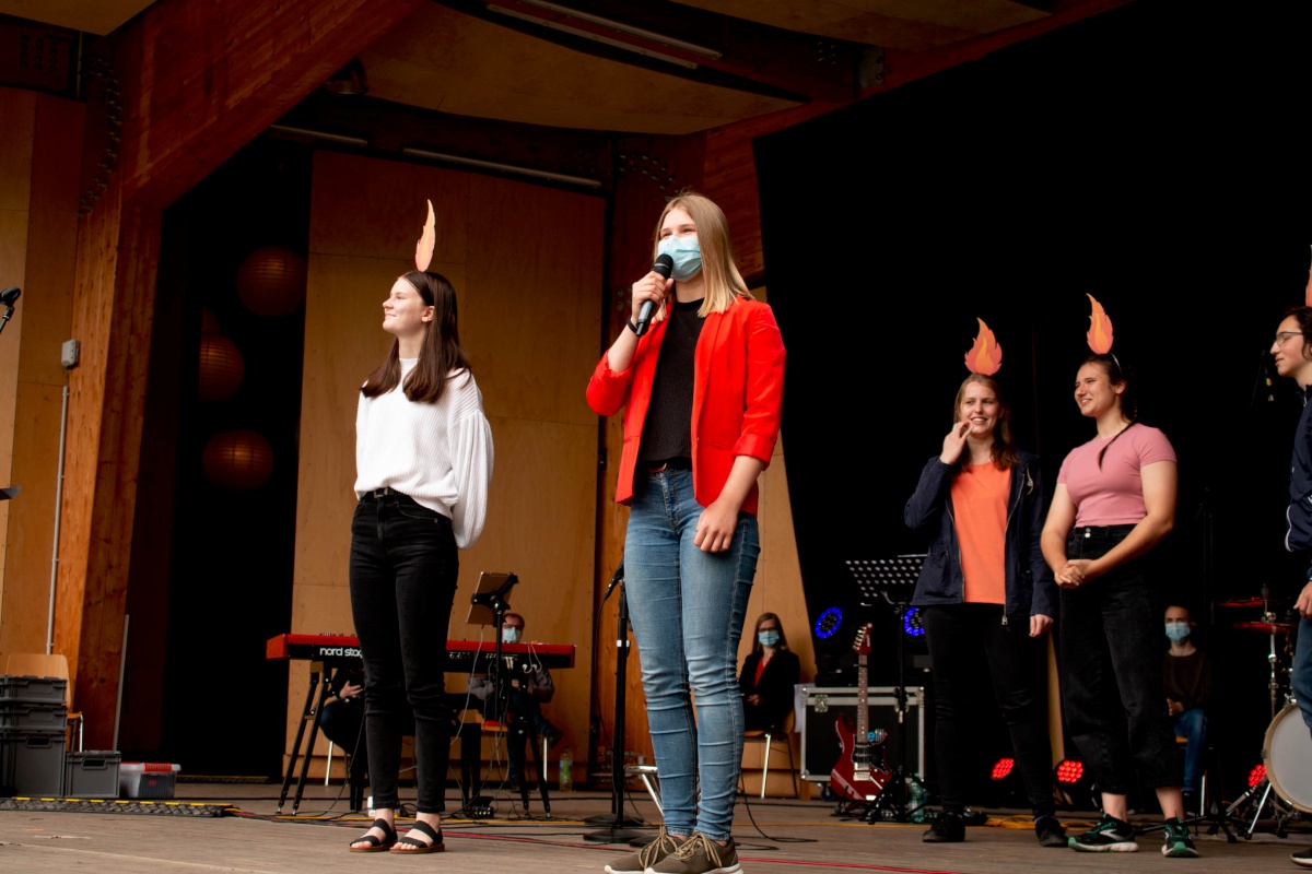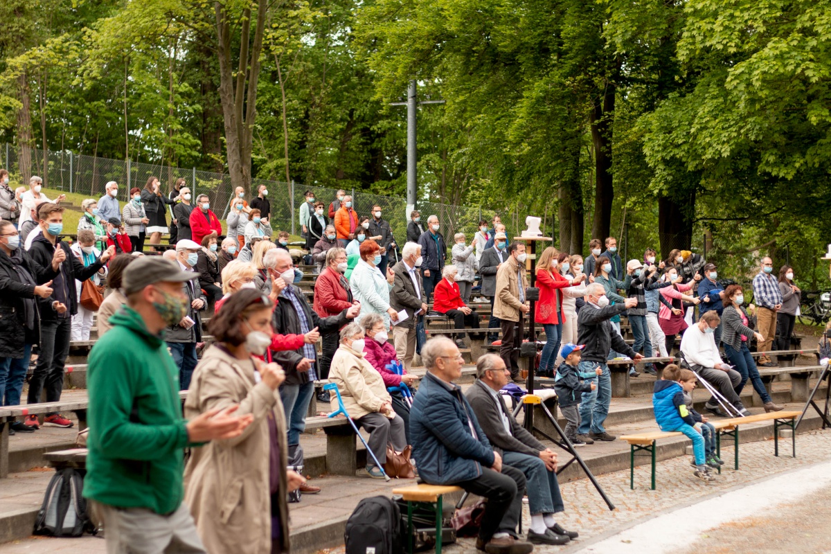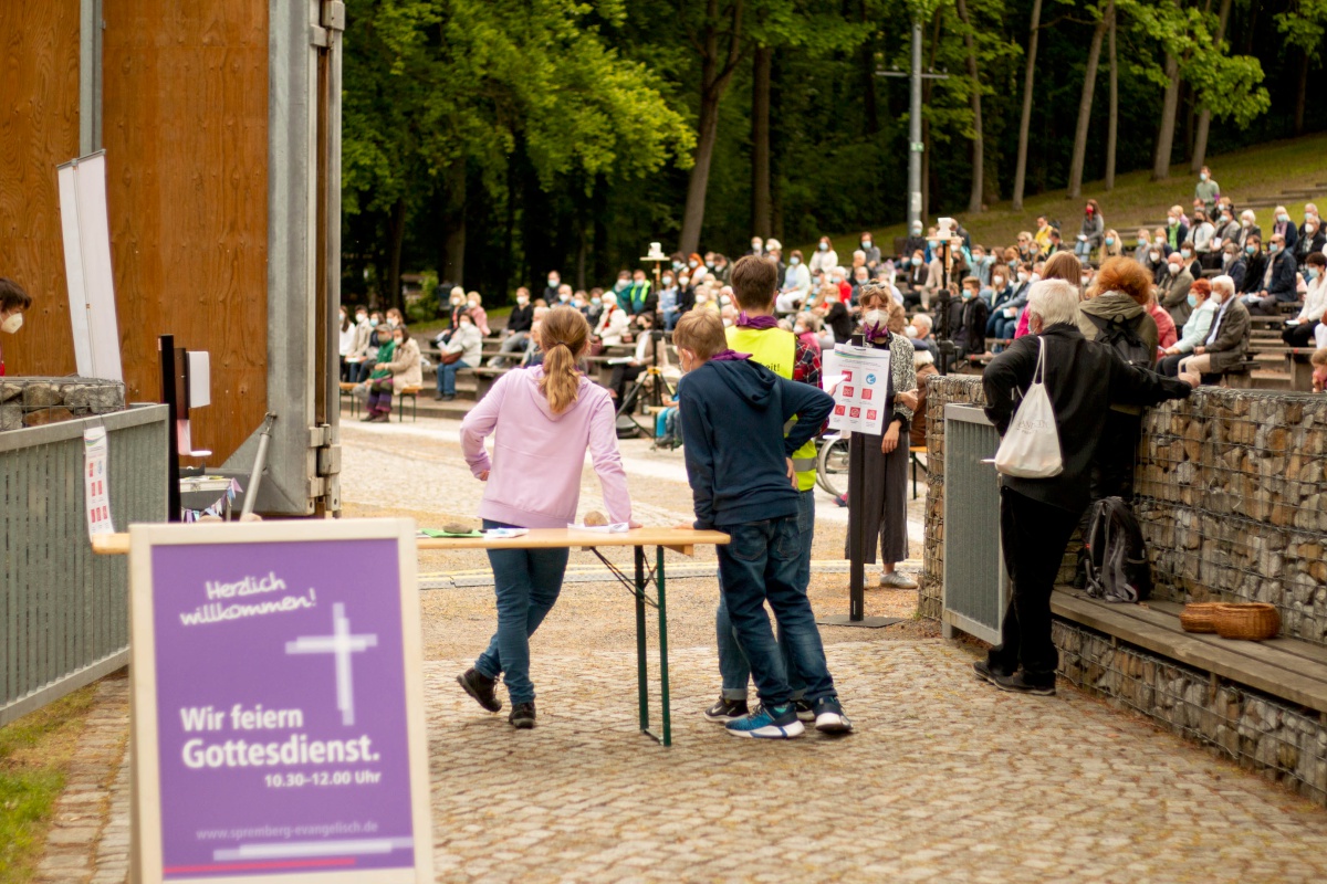 Lange haben wir darauf gewartet, gehofft und gebangt, ob es klappen wird. Doch dann durfte er stattfinden: Unser Pfingstgottesdienst am Pfingstmontag, dem 24. Mai mit dem Thema: #ansteckend. Der traditionelle Ort wäre der Stausee gewesen, aber durch die verschiedenen Corona-Hygiene-Maßnahmen fiel die Wahl auf die Freilichtbühne. Mit begrenzter Besucherzahl von 250 Personen (+ Mitarbeiter:innen) feierten wir einen Gottesdienst in großer Gemeinschaft mit allen evangelischen Kirchgemeinden aus Spremberg und Umgebung.