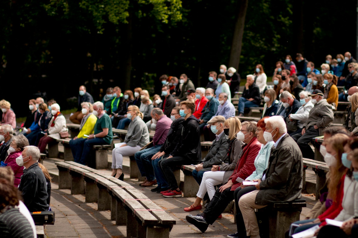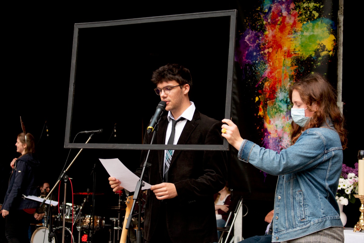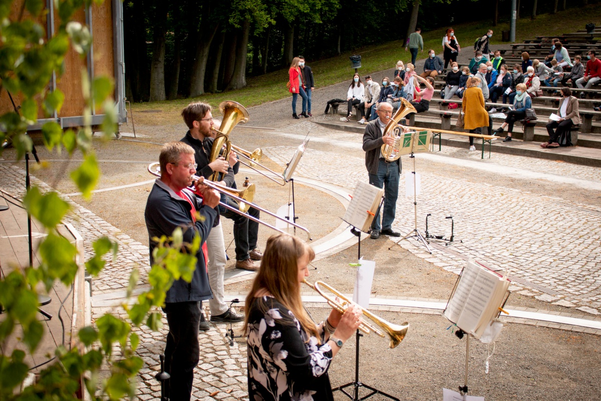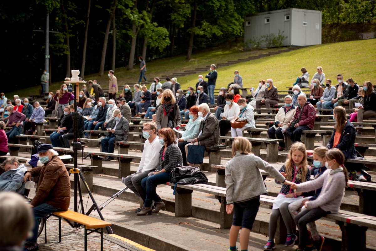 Lange haben wir darauf gewartet, gehofft und gebangt, ob es klappen wird. Doch dann durfte er stattfinden: Unser Pfingstgottesdienst am Pfingstmontag, dem 24. Mai mit dem Thema: #ansteckend. Der traditionelle Ort wäre der Stausee gewesen, aber durch die verschiedenen Corona-Hygiene-Maßnahmen fiel die Wahl auf die Freilichtbühne. Mit begrenzter Besucherzahl von 250 Personen (+ Mitarbeiter:innen) feierten wir einen Gottesdienst in großer Gemeinschaft mit allen evangelischen Kirchgemeinden aus Spremberg und Umgebung.