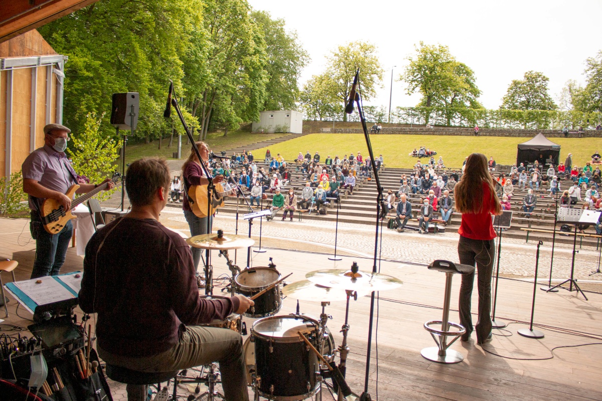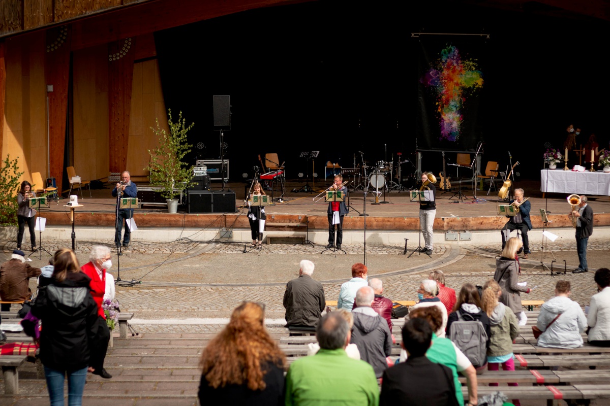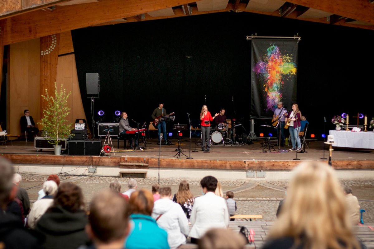 Da der Gottesdienst mit Voranmeldung beworben wurde und die Teilnehmerliste schon 5 Tage vorher voll war, wurde spontan noch ein Video-Livestream auf die Beine gestellt, so dass auch von außerhalb der Freilichtbühne viele Menschen den Gottesdienst live verfolgen konnten. Auch ihr seid herzlich eingeladen, den Gottesdienst in unserem YouTube-Kanal noch einmal oder zum ersten Mal anzuschauen.