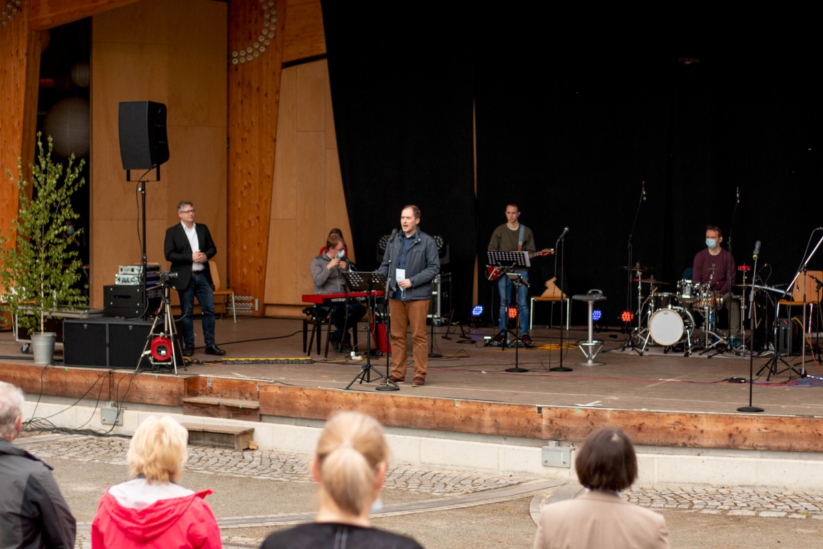 Wir danken der Stadt Spremberg, die uns die Freilichtbühne zur Verfügung gestellt hat. Wir danken Ronny Lehmann von entire-Veranstaltungstechnik für die Bereitstellung und Unterstützung bei Ton- und Lichttechnik. Danke an den Stadtkanal, der den Gottesdienst abends im heimischen TV ausstrahlte. Wir danken allen 50 Mitarbeiter:innen (Ordner-Team, Bläserchor, Junge Gemeinde, Band, Video-Team, Fotografen, Pfarrteam, Moderation, Kinderteam, Leser:innen, Beter:innen, Bühnengestalter:innen, Techniker, Helfern, Stadt-Gottesdienst-Team) für ihren leidenschaftlichen Einsatz für dieses Projekt! Und wir danken unserm gemeinsamen Schöpfer, der uns mit genialem Wetter und niedrigen Inzidenzen beschenkte. 🙂