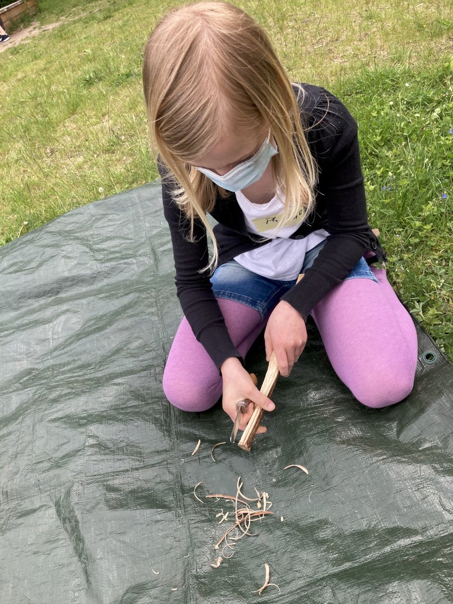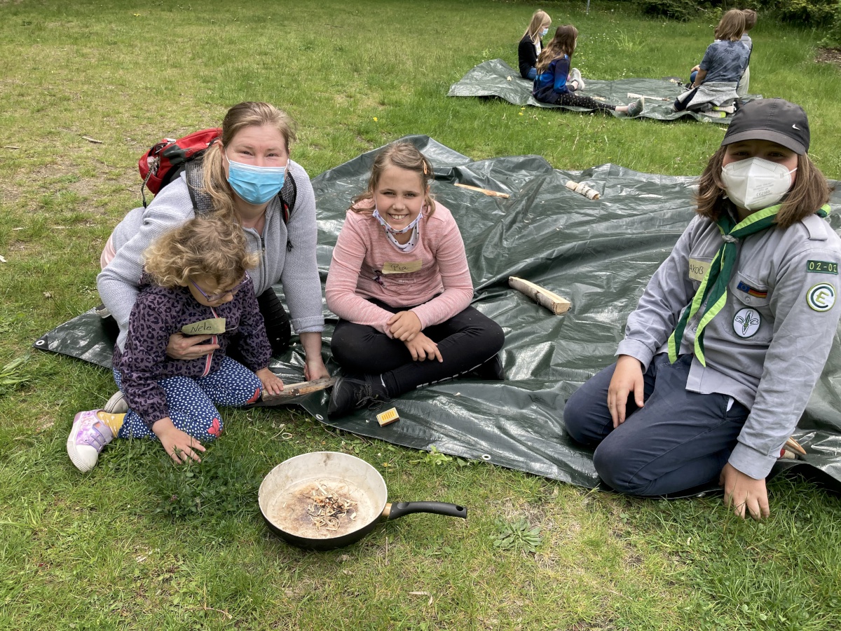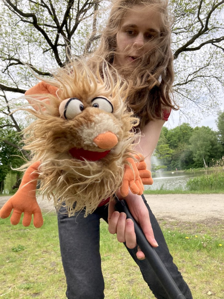 Für alle Kinder von 4 bis 12 Jahren wurde nach dem Kinderlied ein buntes Programm am Schwanteich angeboten: Flammen ausmalen, Spielgeräte ausprobieren, Pfadfinder-Aktion: schnitzen & Feuer entzünden und auch die Handpuppe Norbert war dabei. Norbert hatte das mit dem Feuer zu Pfingsten ein bisschen falsch verstanden – zum Glück konnte Micha die Geschichte erzählen wie sie wirklich war …