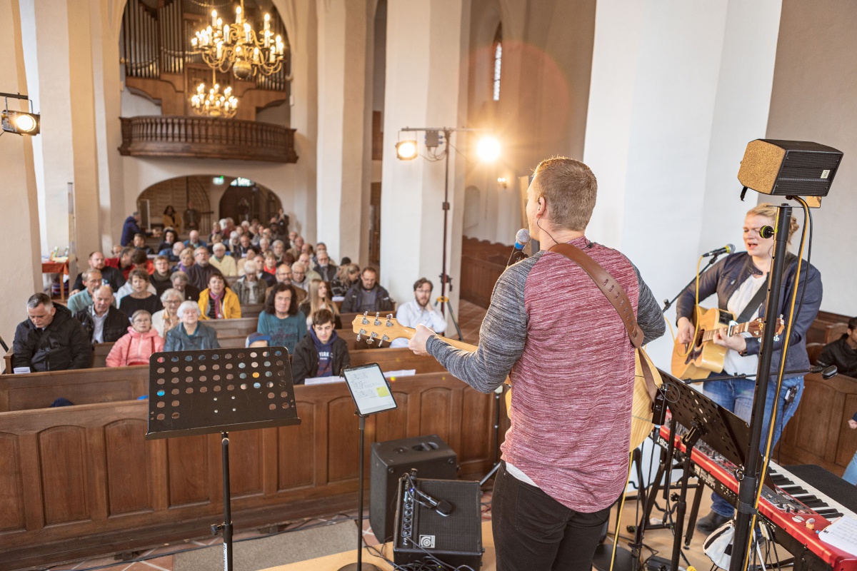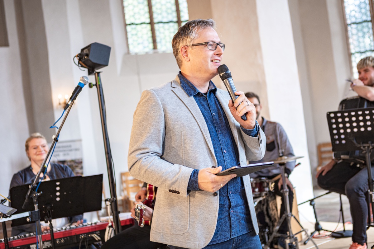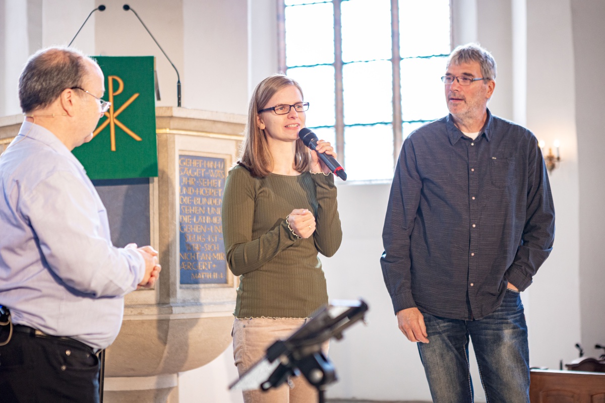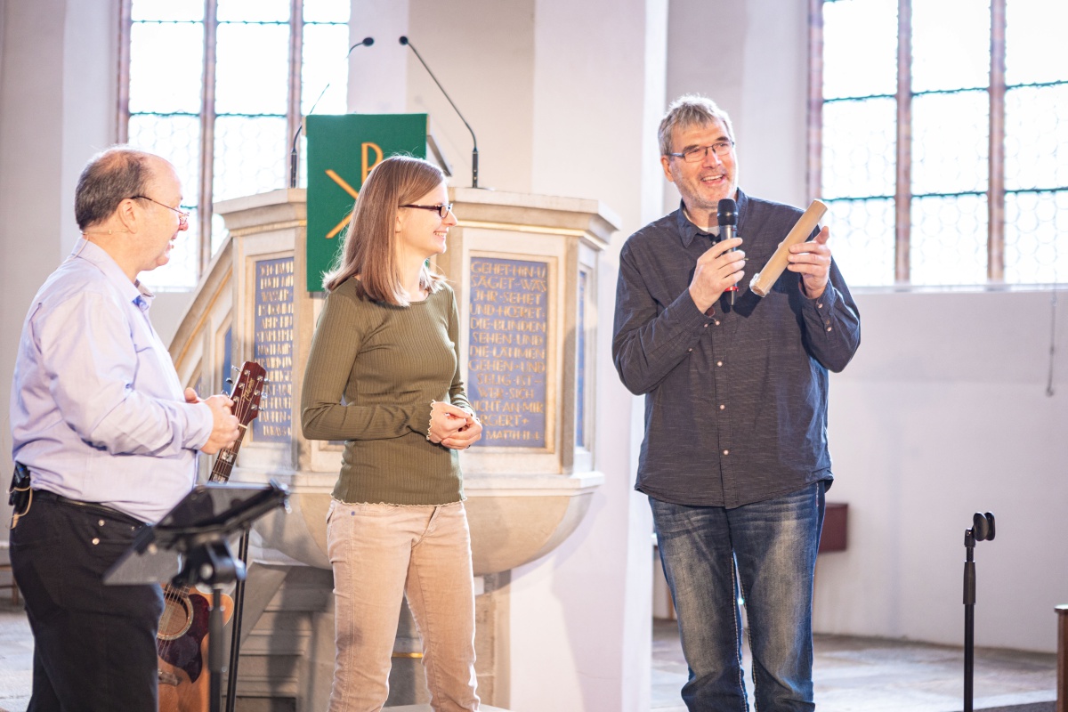 Mit einem gemeinsamer Gottesdienst starteten wir in der Johanneskirche Hoyerswerda in den Tag. Das Musikteam aus Ludwigsfelde und Neustadt hatte gefühlvolle und spritzige Lieder im Gepäck. Die Predigt kam von Schw. Christa Weik, die zur Zeit ehrenamtlich beim Gemeindegründungsprojekt St. Bernhard mitarbeitet. Während des Gottesdienstes wurde der „Staffelstab“ des Vorsitzes im Regionalvorstand Lausitz weitergegeben. Nach 24 Jahren übergibt ihn Willi Hacker aus der LKG Cottbus an Denise Kantor aus der LKG Spremberg. Durch den Gottesdienst leitete uns fröhlich und inspirierend Prediger Andreas Heydrich (LKG Spremberg).