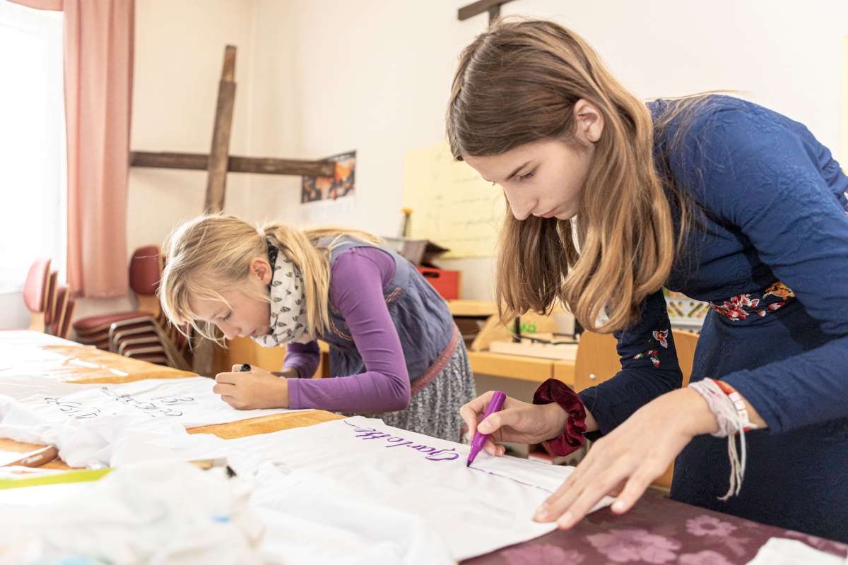 Parallel fand in den Räumen der LKG Hoyerswerda das Kinderprogramm mit Cottbuser Mitarbeitenden statt. T-Shirts wurden bemalt, Geschichten gehört, geturnt und gesungen.