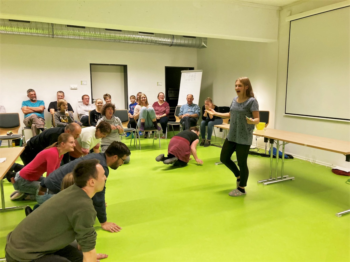 Mit einem Begrüßungsabend „Verbesserung™“, der wild, lustig, kreativ, aufregend, spannend und einfach gut war, starteten wir mit 62 Leuten zwischen 0 und 79 Jahren in das Wochenende.