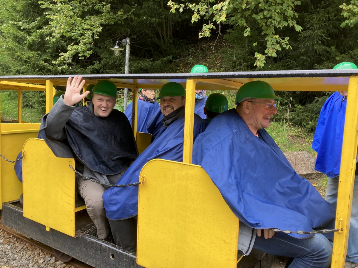 Am Nachmittag fuhr eine Gruppe in den Markus-Röhling-Stolln und erkundete das ehemalige Silber- und Uran-Bergwerk. Eine weitere Gruppe bestaunte das erzgebirgsche Spielzeug in der Familienburg Scharfenstein und genoss den Ausblick vom Burgturm. Wieder andere flanierten durch Chemnitz oder bestaunten die St. Annenkirche in Annaberg-Buchholz.