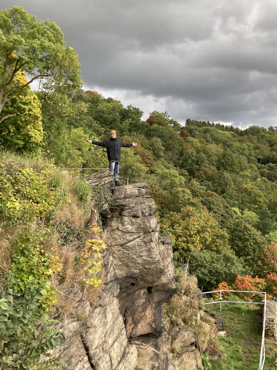 Nachmittags machten wir uns wieder auf ins schöne Erzgebirge. Eine große Gruppe traf sich in Wolkenstein teils zum Wandern, teils zum Museumsbesuch und teils um die Klettersteige auszuprobieren, die unterhalb der Burg bzw. oberhalb vom Fluss Zschopau installiert sind. Weitere Ziele waren der Chemnitz Tierpark und verschiedene Schlösser.