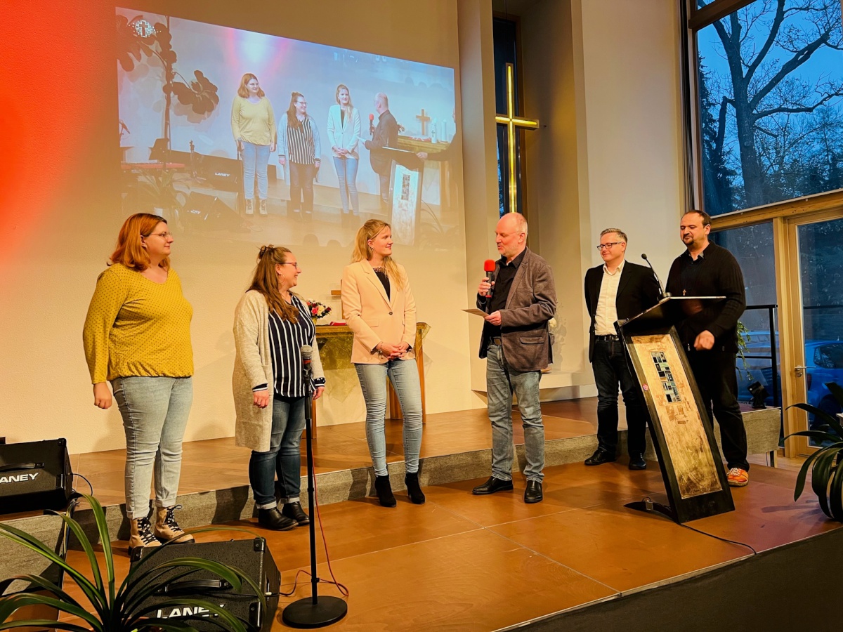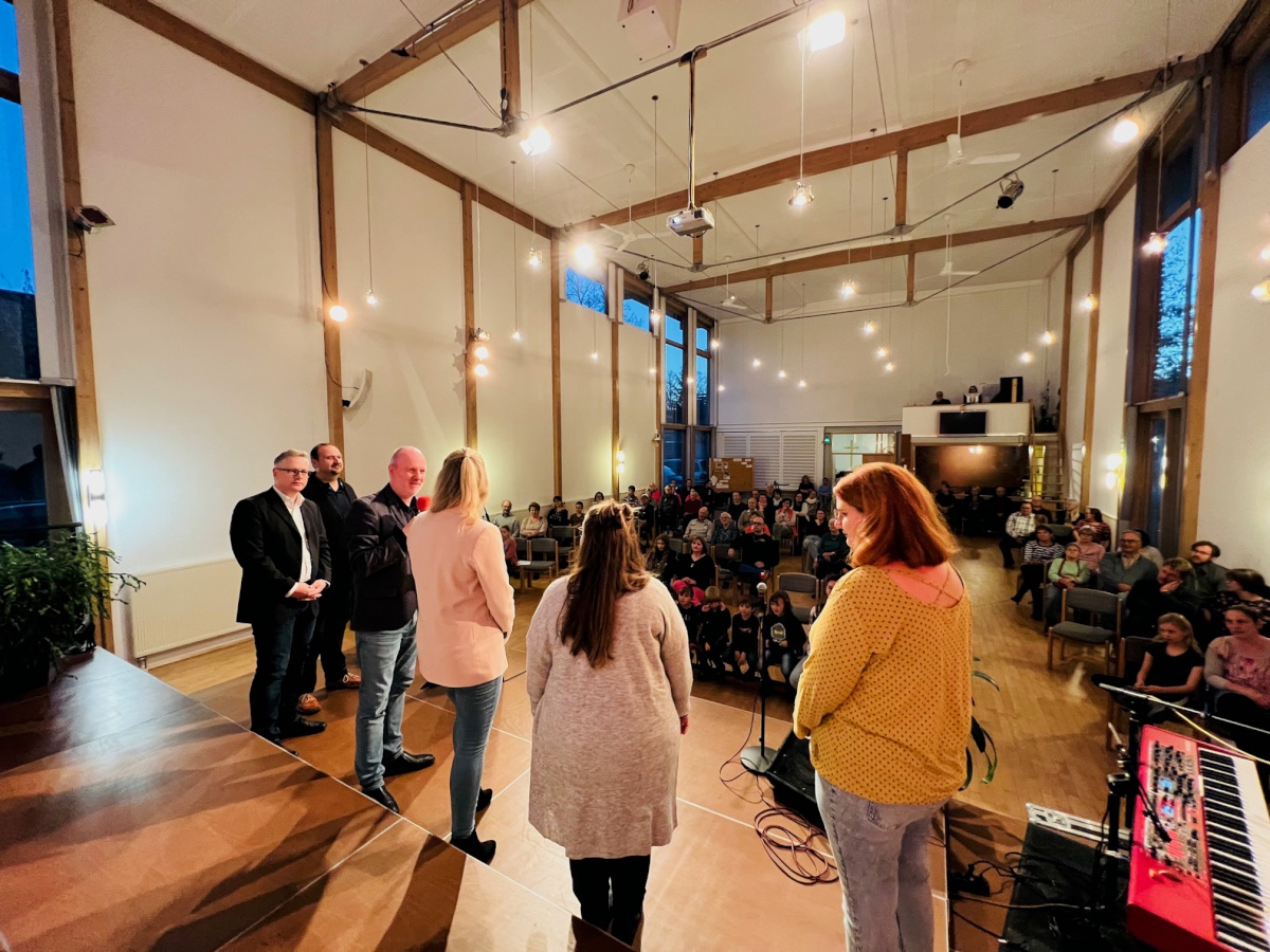 Zwei dieser Hauptamtlichen wurden im Gottesdienst am Sonntag, den 6. November eingesegnet. Unsere Kinderreferentin Anna Thamm und verantwortliche Mitarbeiterin für die SpreeeKids Patricia Heydrich wurden unter Gottes Schutz und seine Führung gestellt. Dazu reiste Matthias Reumann, der theologische Leiter unseres Gemeinschaftswerkes, an und zusammen mit Vorstandsmitgliedern und unserem Prediger Andreas Heydrich beteten sie für die doch oft auch herausfordernde und schöne Arbeit.