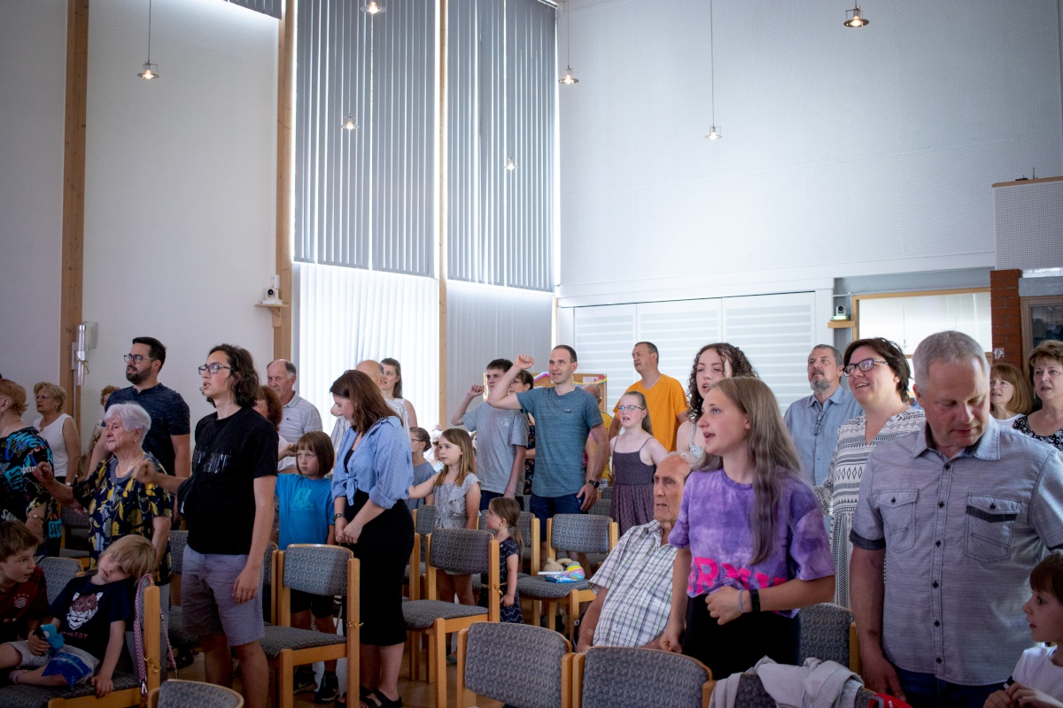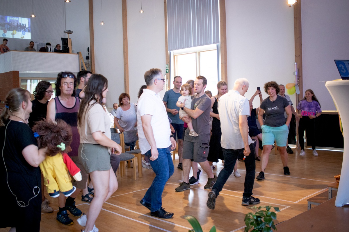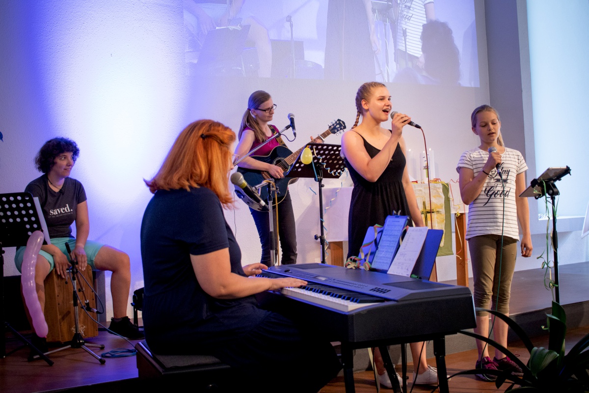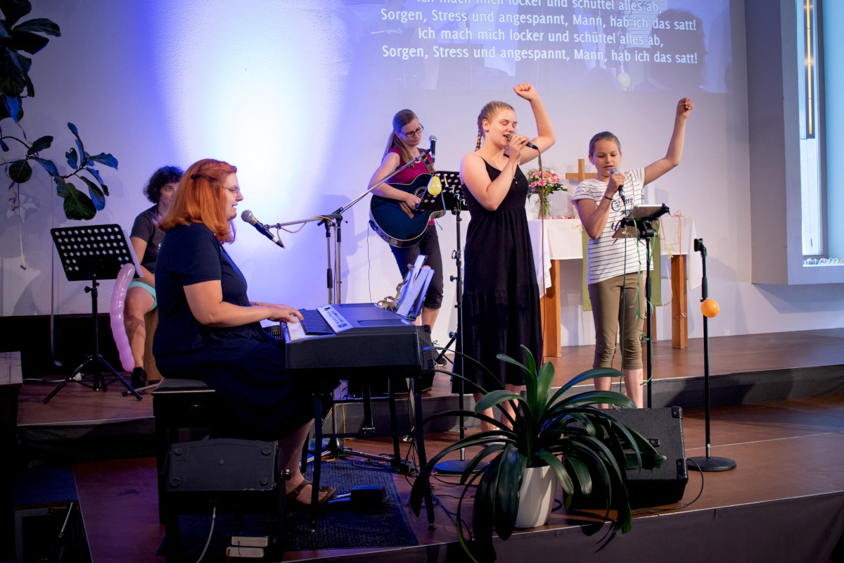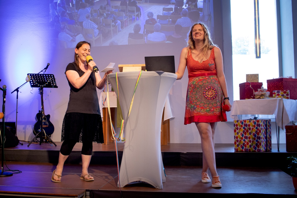 Nach der Frage des Geburtstagsalters der LKG (schon 123 Jahre!) wurde das 1-2-oder-3-Quiz gespielt. Die Anzahl der Prediger, das Logo auf dem Gemeindehaus oder wie unsere Spielplatzrutsche aussieht, mussten u.a. beantwortet werden.
