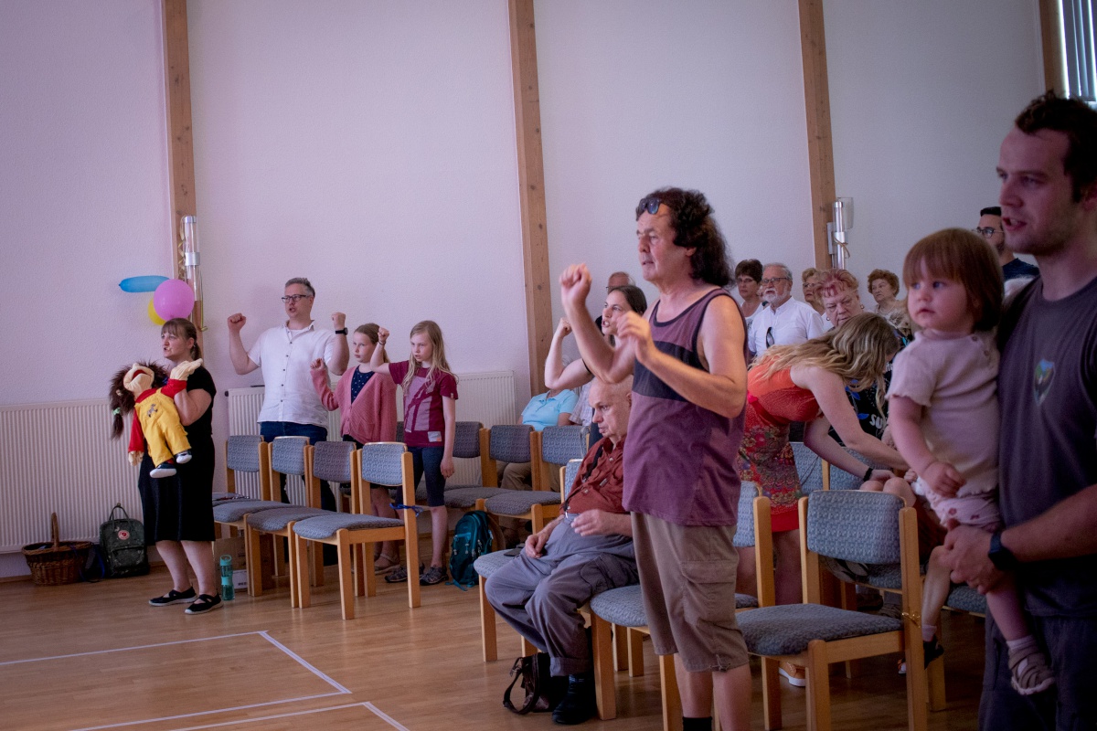 In der Predigt ging es dann um die große Frage: Wie merke ich im Leben, ob ich eine Entscheidung richtig getroffen habe? – dort erscheint nicht die richtige Antwort auf meine Frage nach dem Satz: „Ob du wirklich richtig stehst, siehst du wenn das Licht angeht.“ – Diese Frage, musste Andreas anhand von Zachäus und der Geschichte der LKG der Handpuppe Lou sehr genau erklären. Und erst dann verstand Lou: Das Licht geht an, wenn du an Gott glaubst und ihm vertraust!