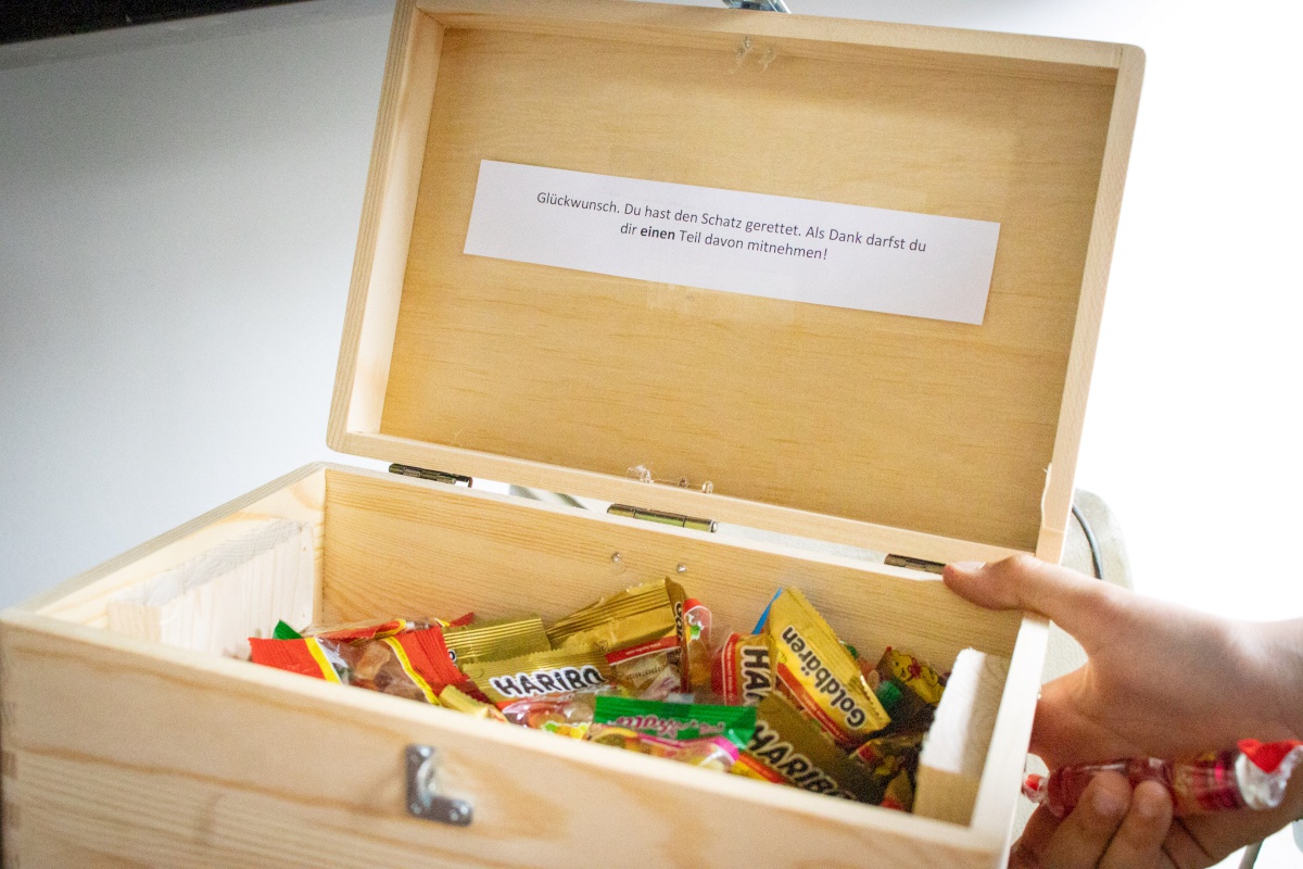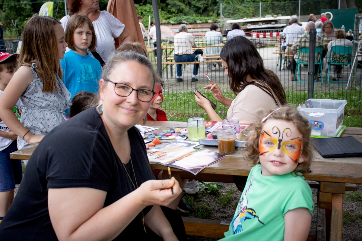 Vorwärts ging es weiter zum Geschenkkistenauspacken, die einige Überraschungen enthielten u.a. die nächsten Veranstaltungen und wie es danach im Außenbereich weitergeht. Viele fleißige Hände hatten gebacken, gerührt, gebastelt und viele Vorkehrungen getroffen, damit man Kisten stapeln, mit dem Kahn fahren, ein Escape-Rätsel lösen, Stockbrot essen, Wasserbomben treffen, sich anmalen lassen konnte.