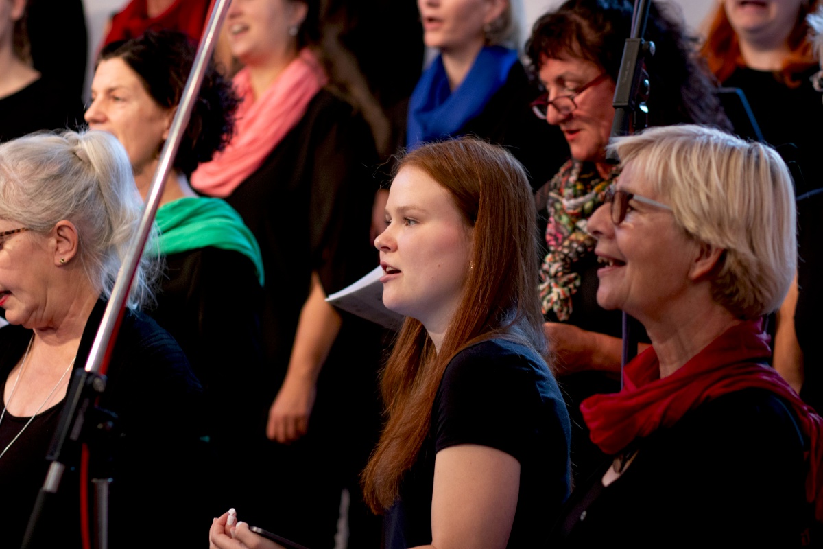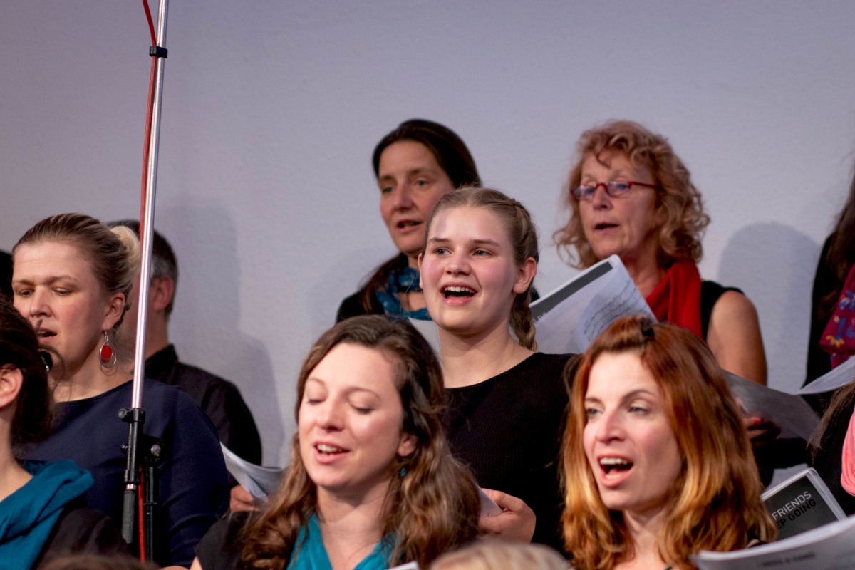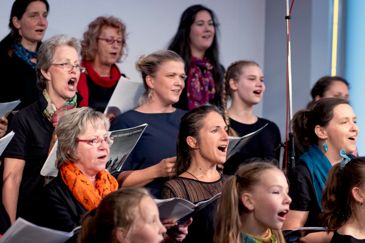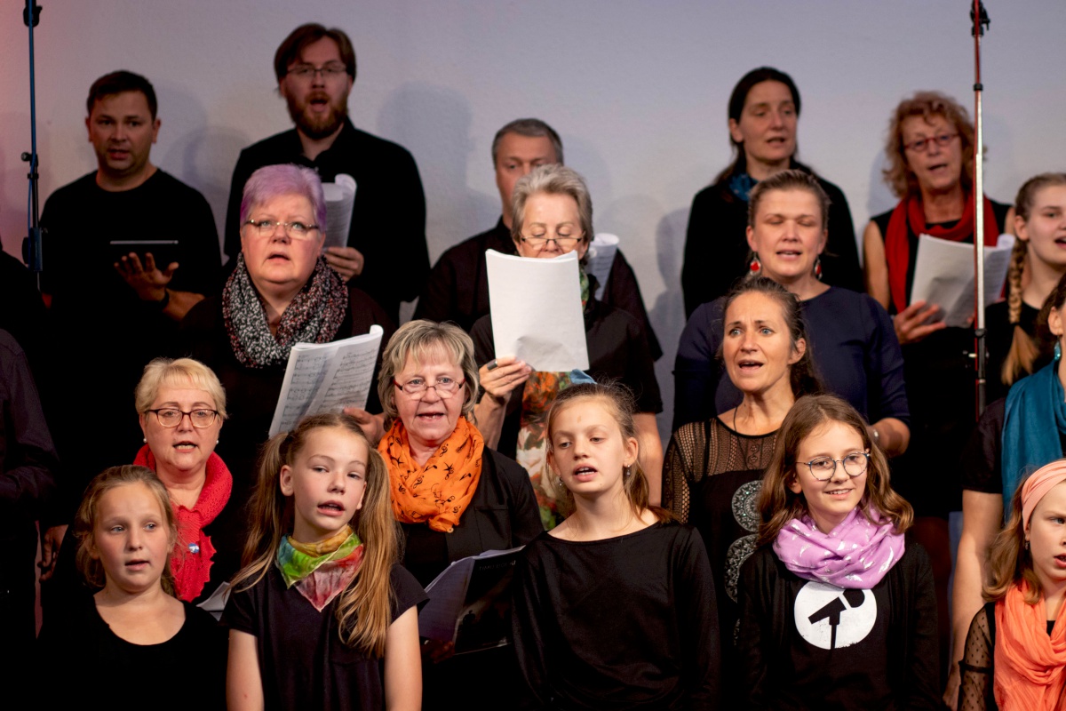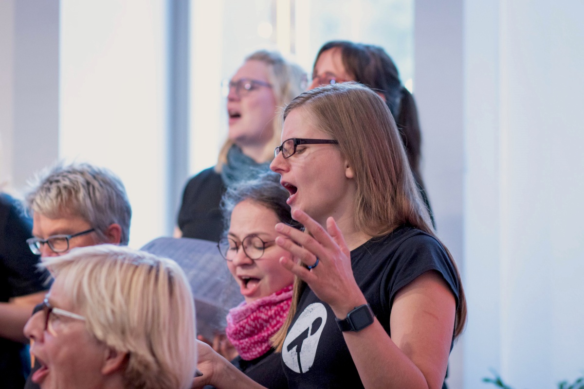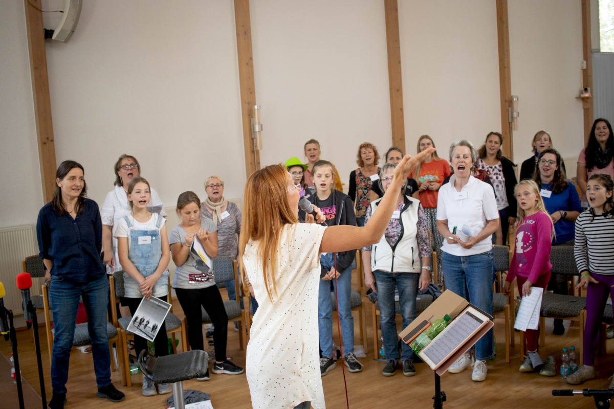 Keep going = weitermachen – das war nicht nur der Titel eines Gospelsongs, sondern entwickelte sich auch zum Motto des Gospelworkshops. Kaum war ein Lied fertig geübt, ging es ans nächste. Von Freitagabend bis Sonntagmittag studierten 50 Teilnehmer/innen unter der Leitung von Anni Barth und Timo Böcking neue Gospelsongs aus der Feder von Timo Böcking ein. Sechs englische und drei deutsche Songs waren es zum Schluss – ein Rekord für den Workshop-Chor und auch für Anni und Timo.